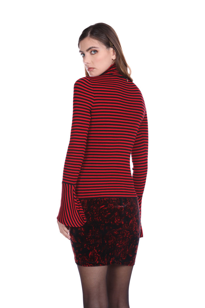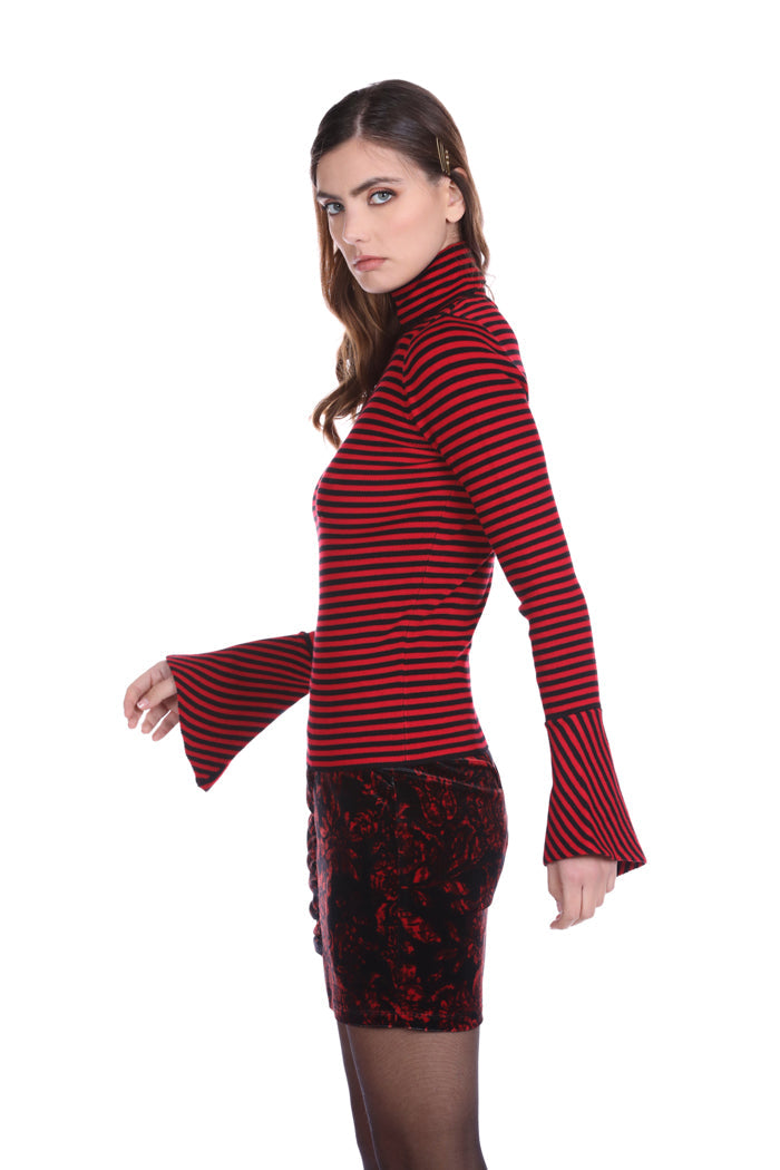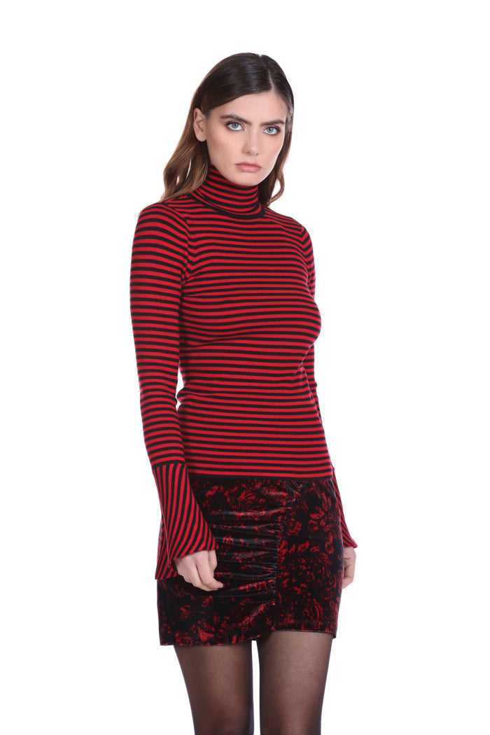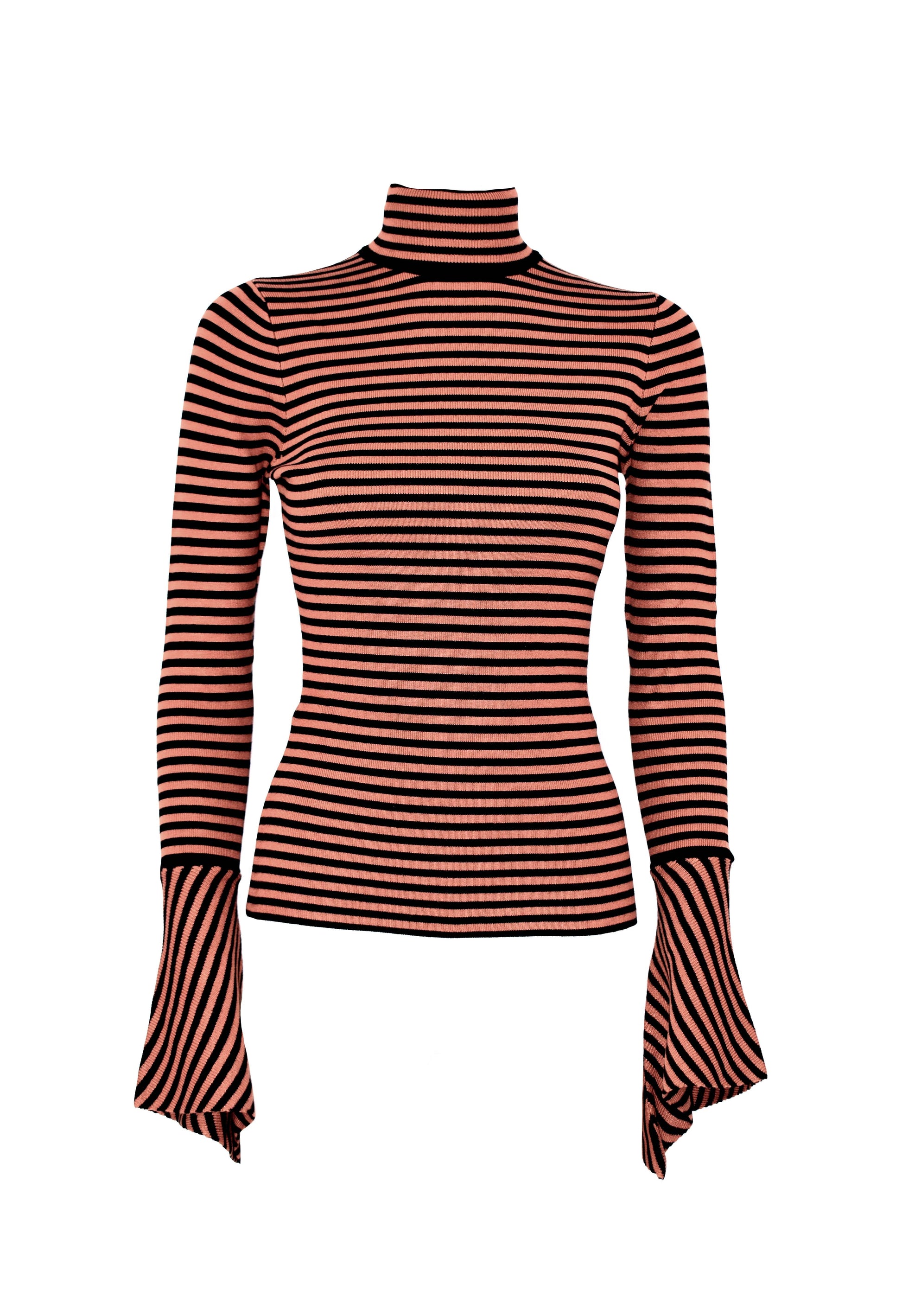 MEGISFRE 长袖喇叭形高领条纹毛衣