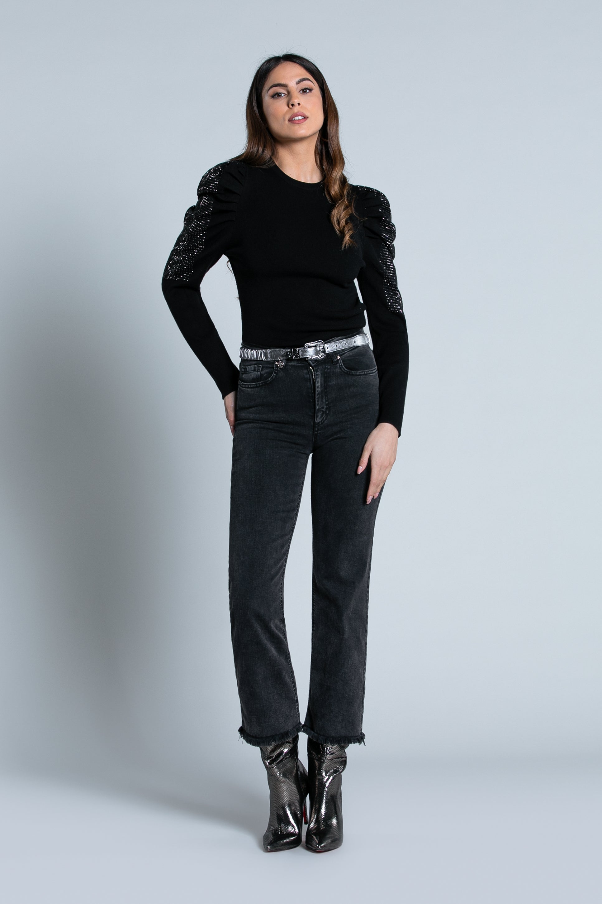 长款泡泡袖 MOA 褶皱水钻衬衫