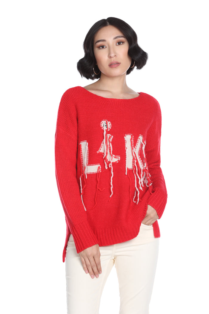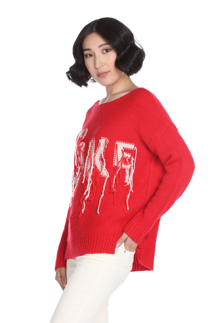 PUMPKIN 长袖毛衣,提花加流苏加开衩