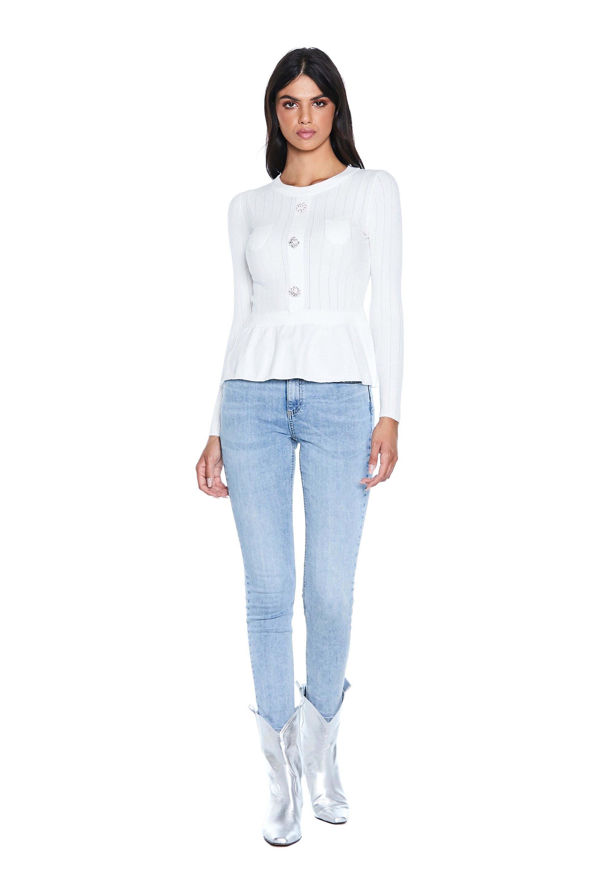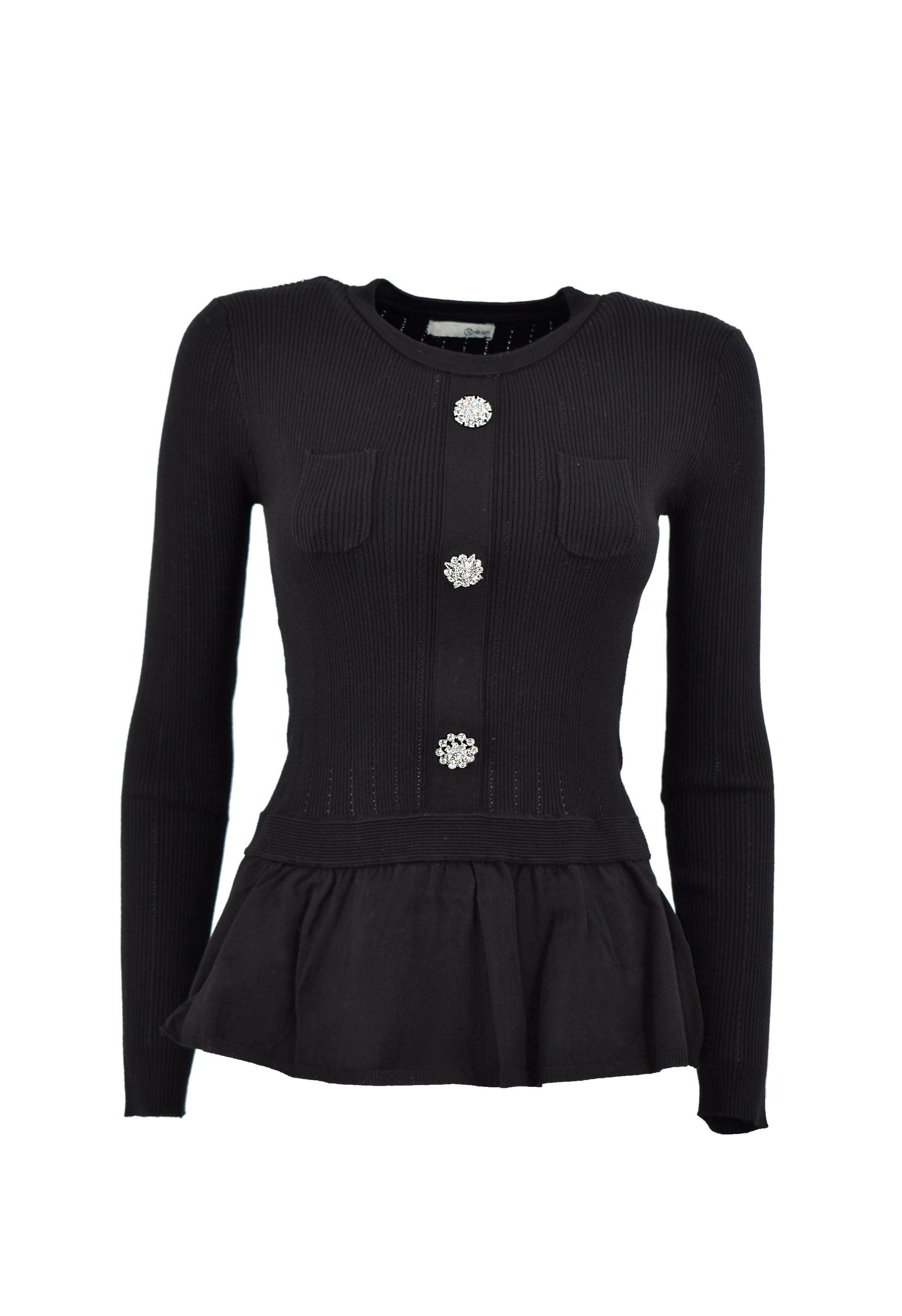 REMMYUS 长袖衬衫,底部荷叶边饰有珠宝纽扣