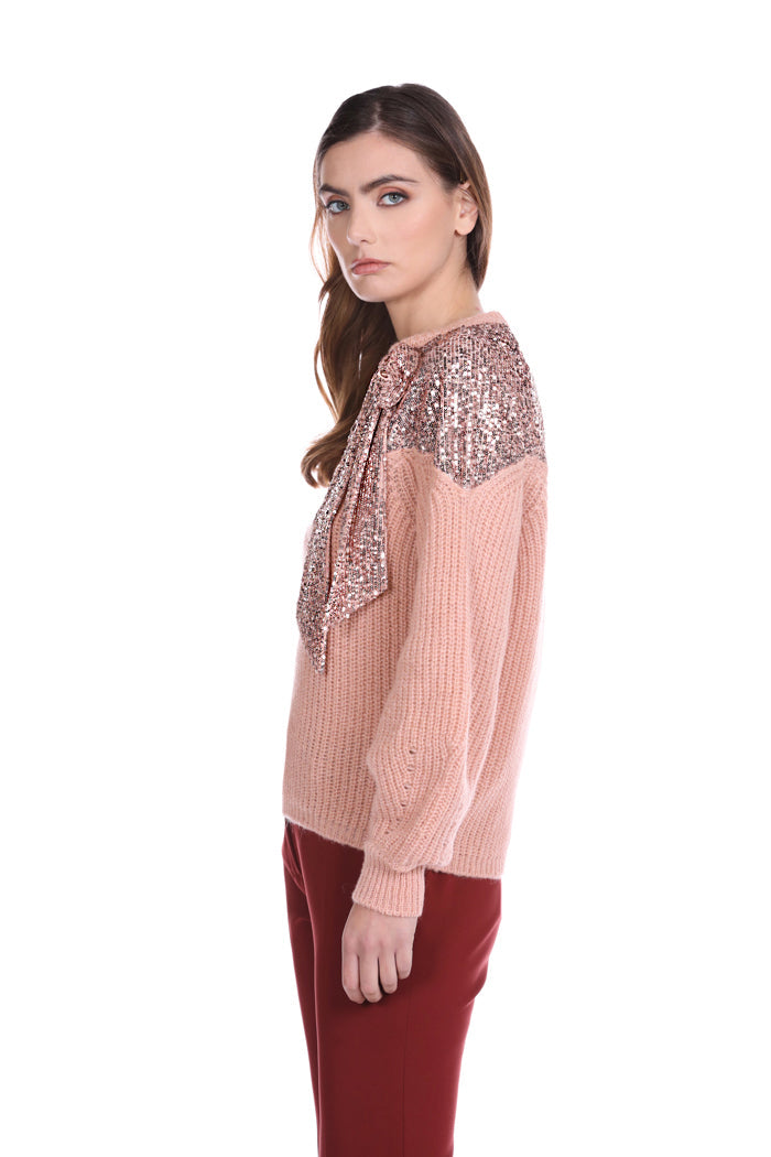 ROSLYND 气球长袖衬衫,饰有亮片镶嵌加蝴蝶结