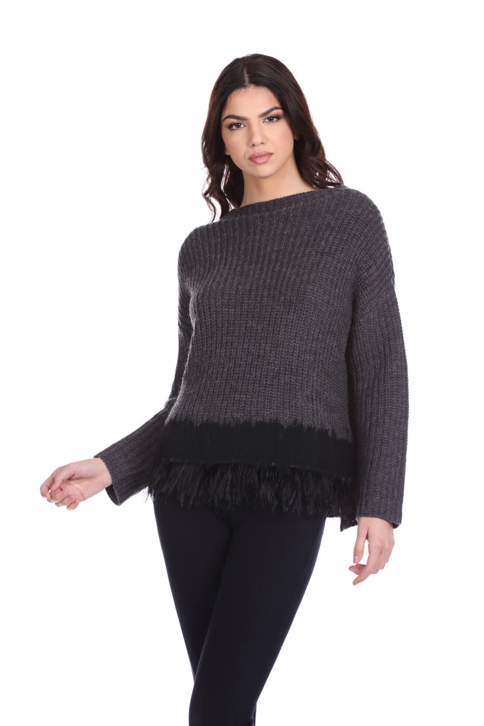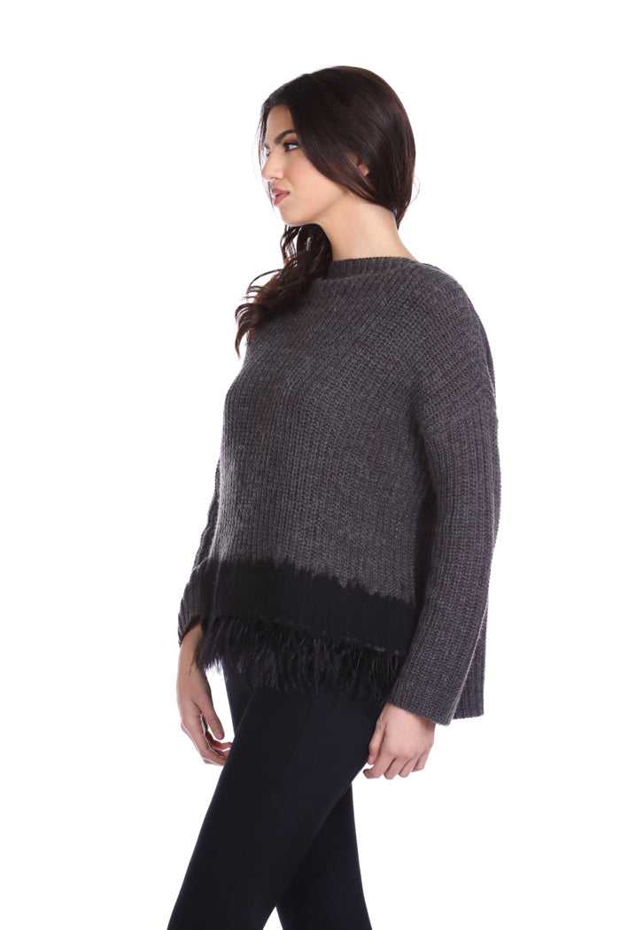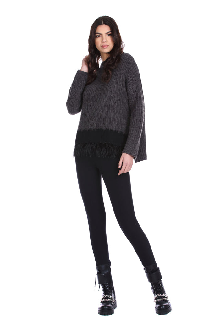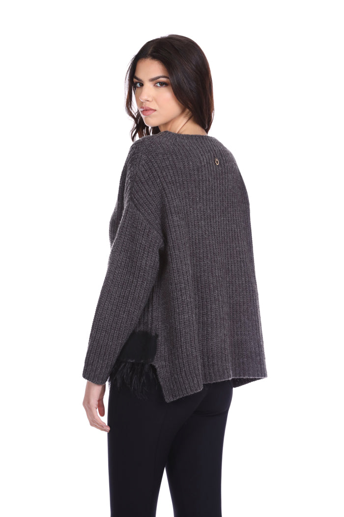 STISHAR 长袖高领毛衣,配以布料和羽毛嵌件