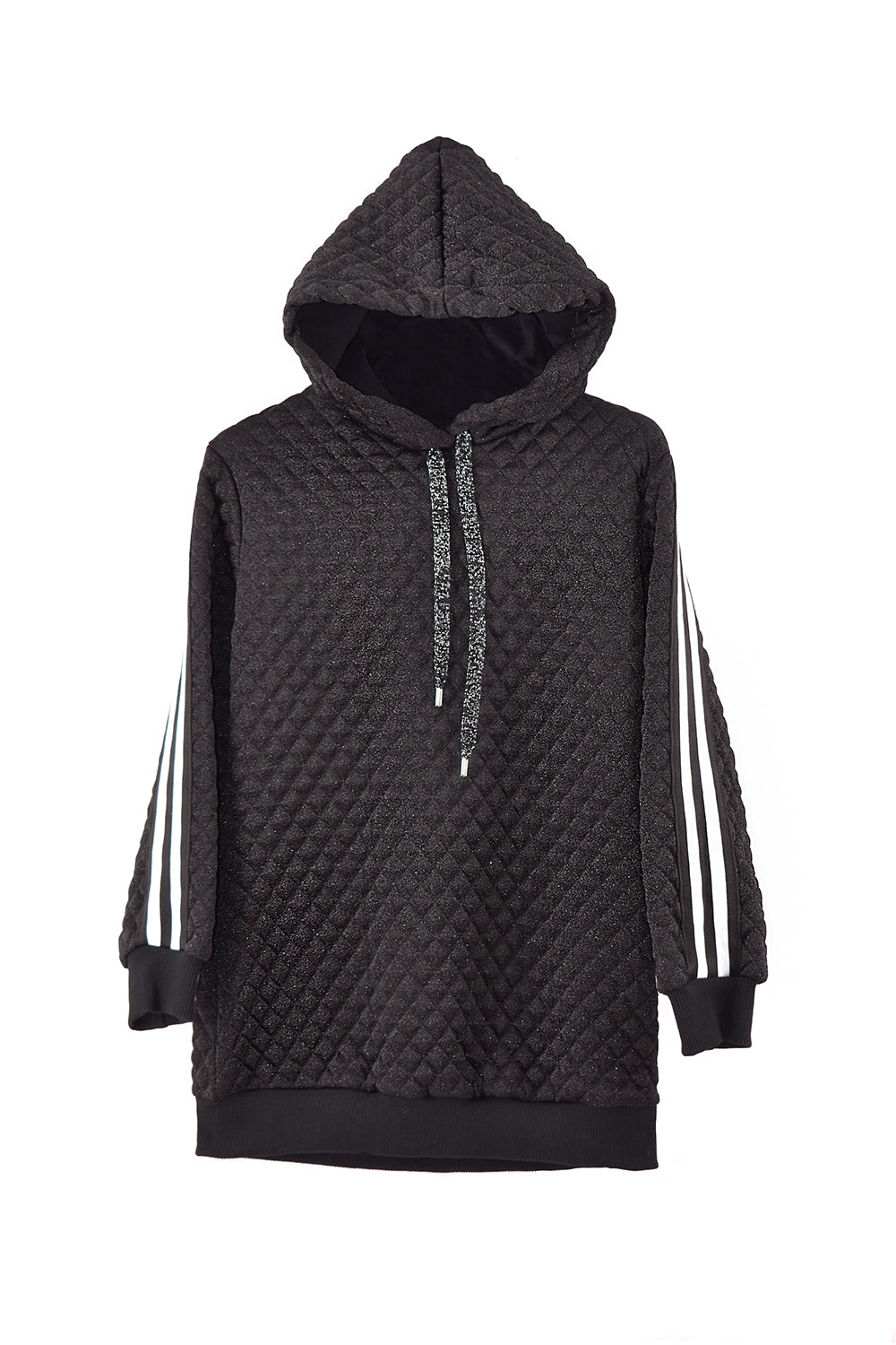 SEFRY 迷你连衣裙,女童长袖条纹带加盖。 plus 抽绳 菱形拼接 Lurex
