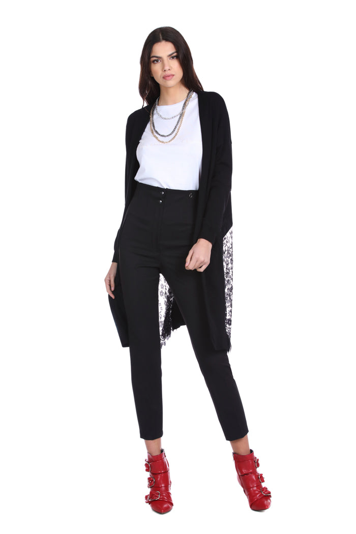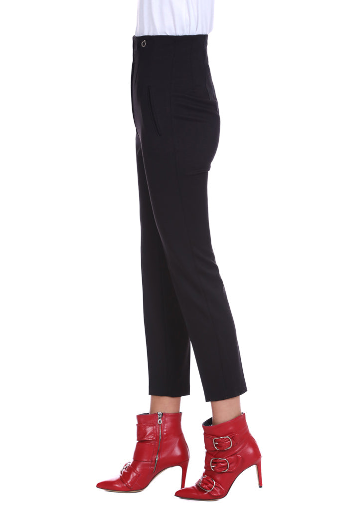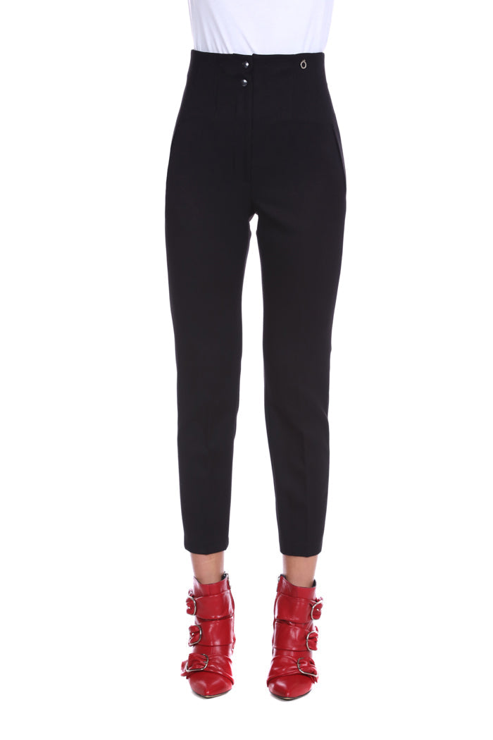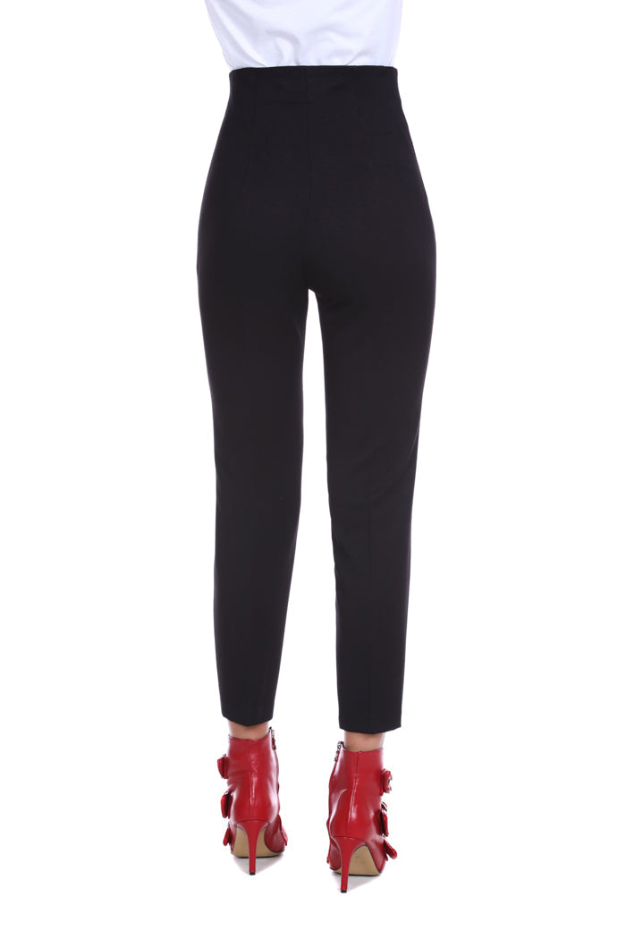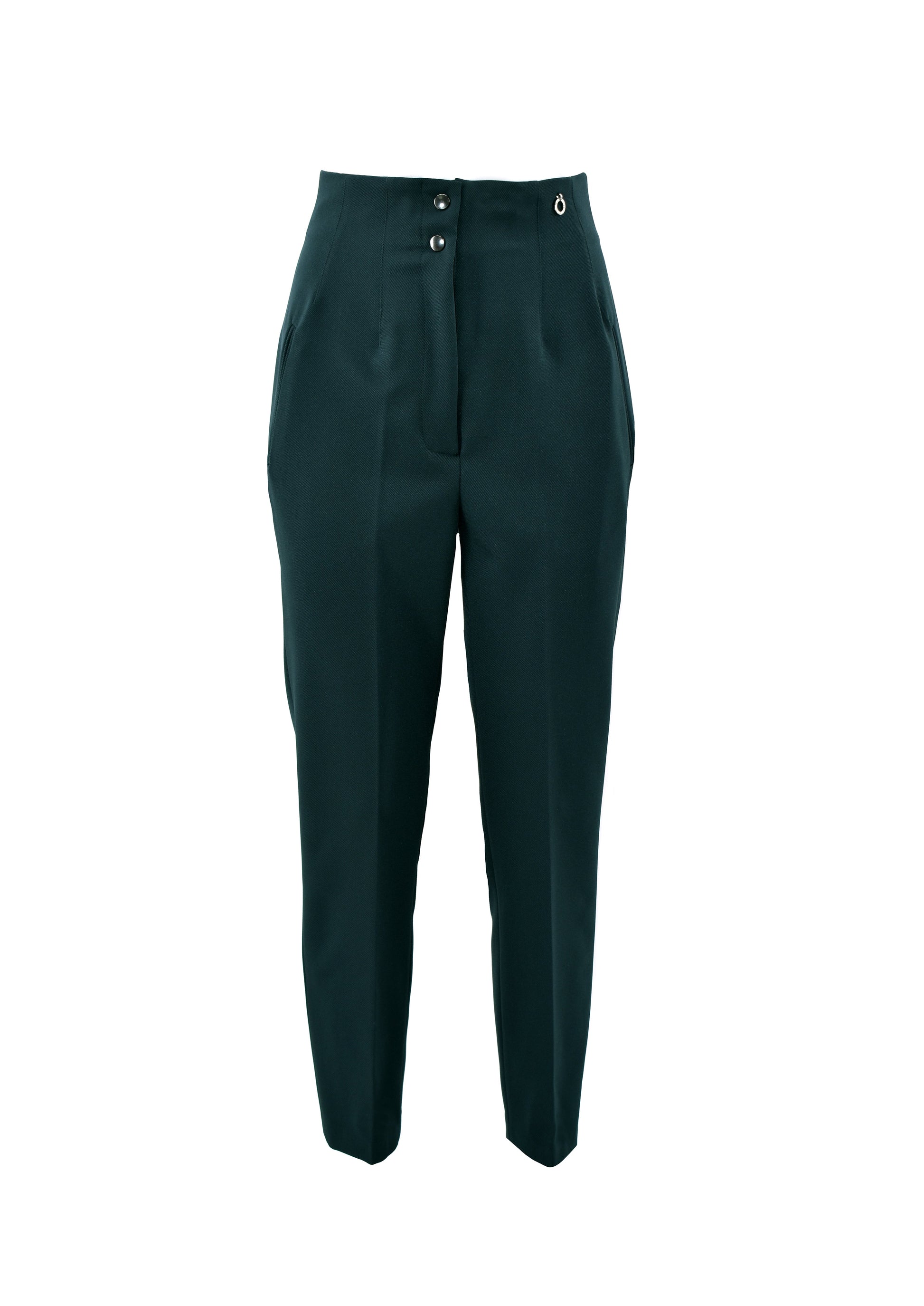 AUGR 高腰长裤无腰带褶加夹扣加拉链加口袋