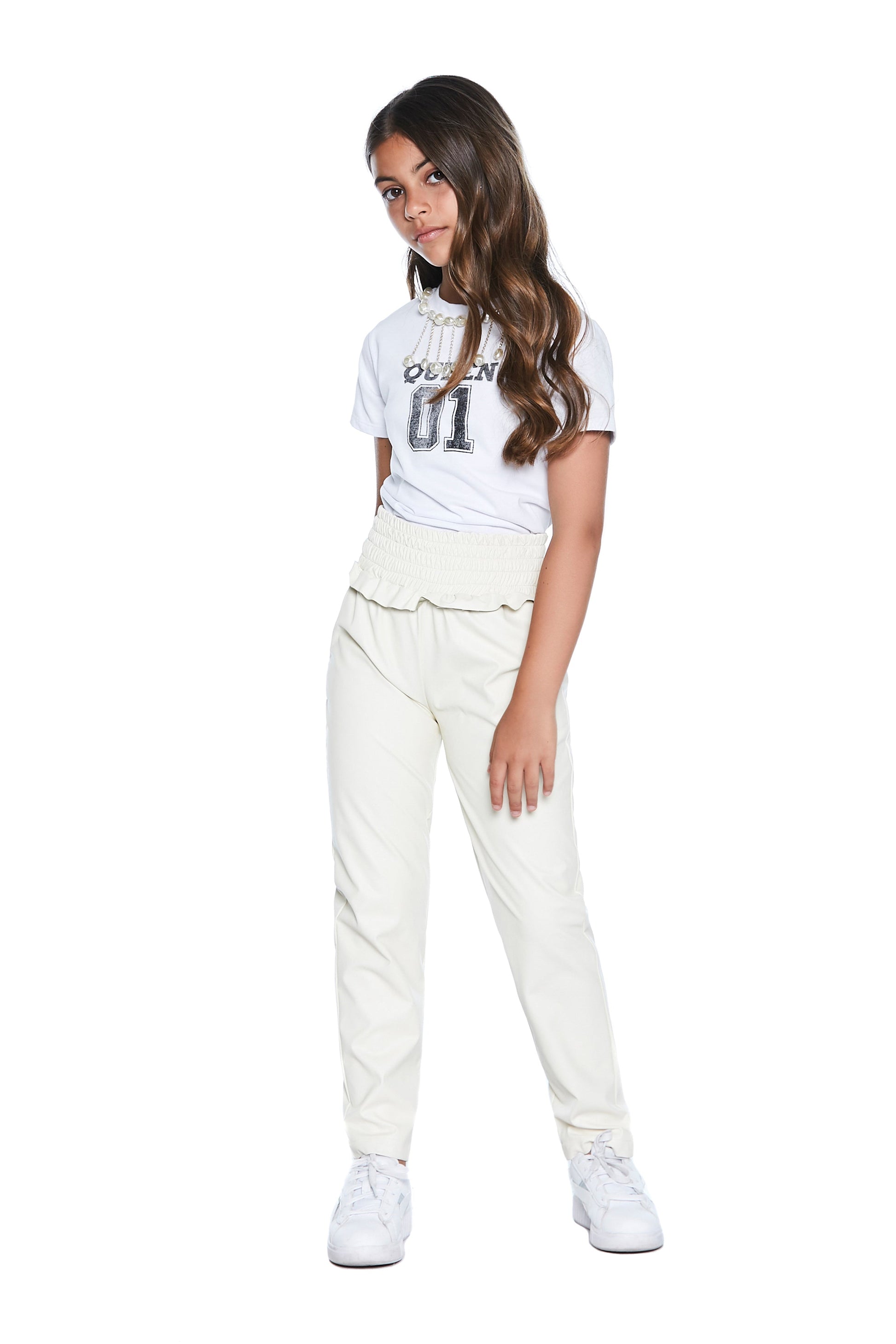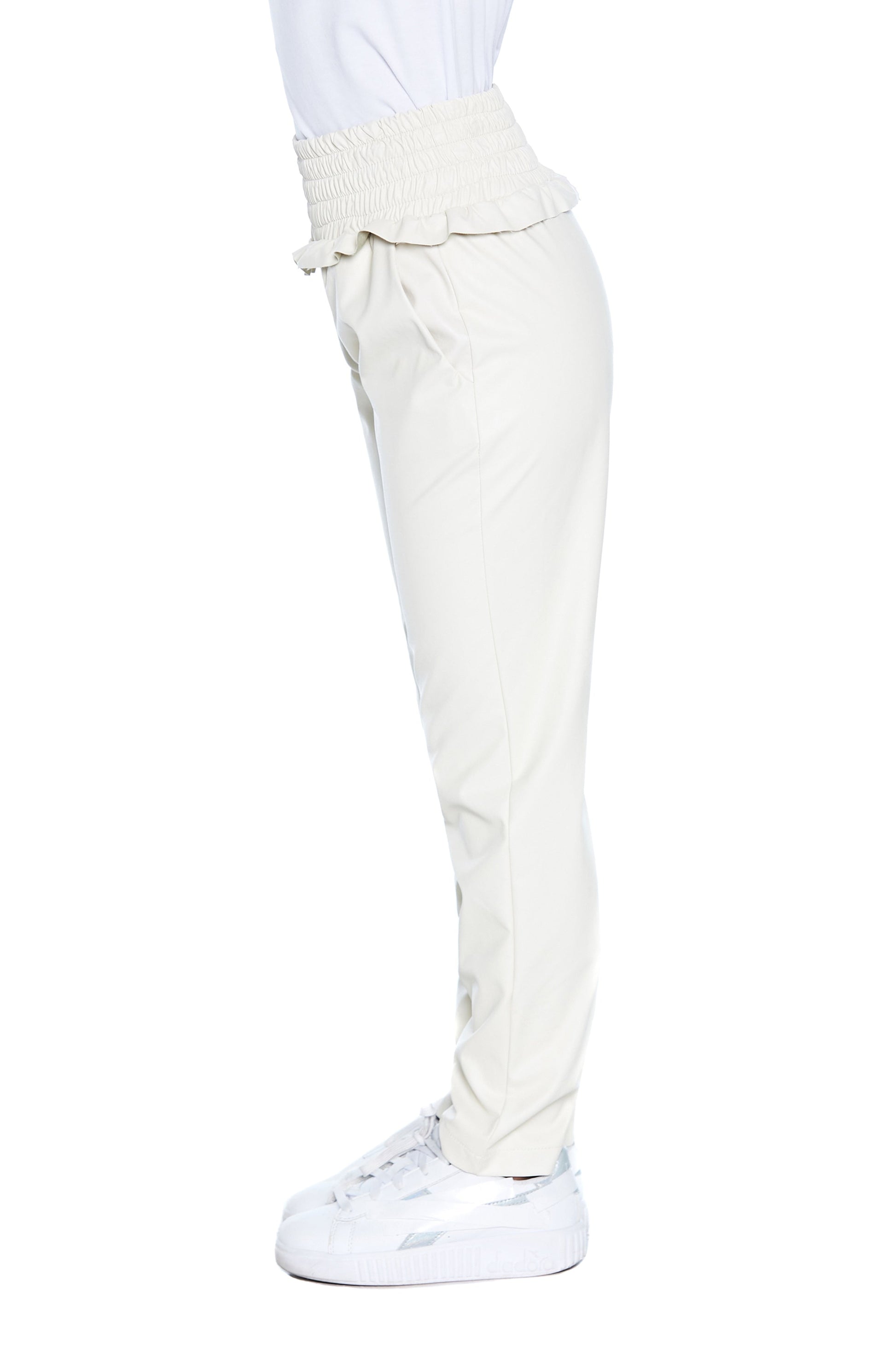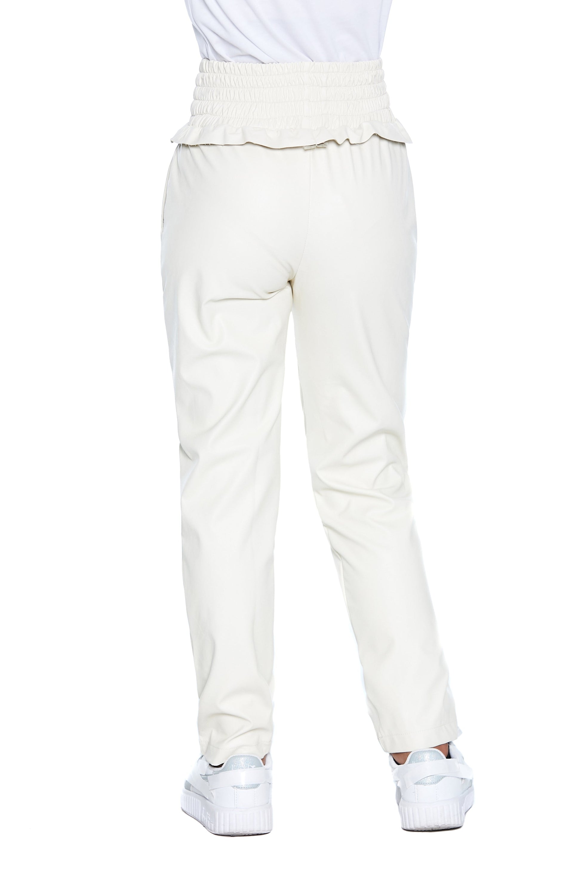 RU 高腰裤,带皱褶缝线加口袋加人造皮革荷叶边