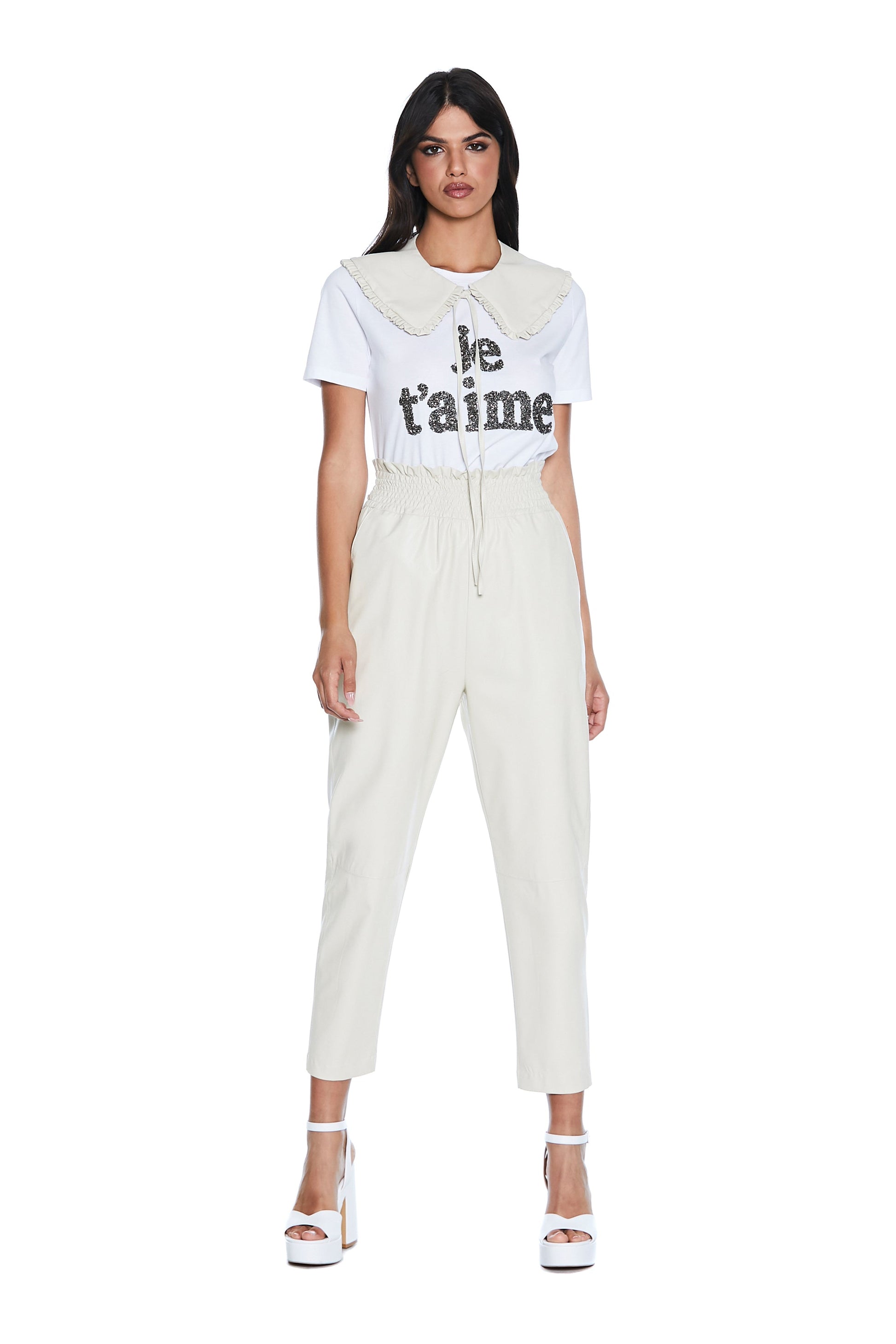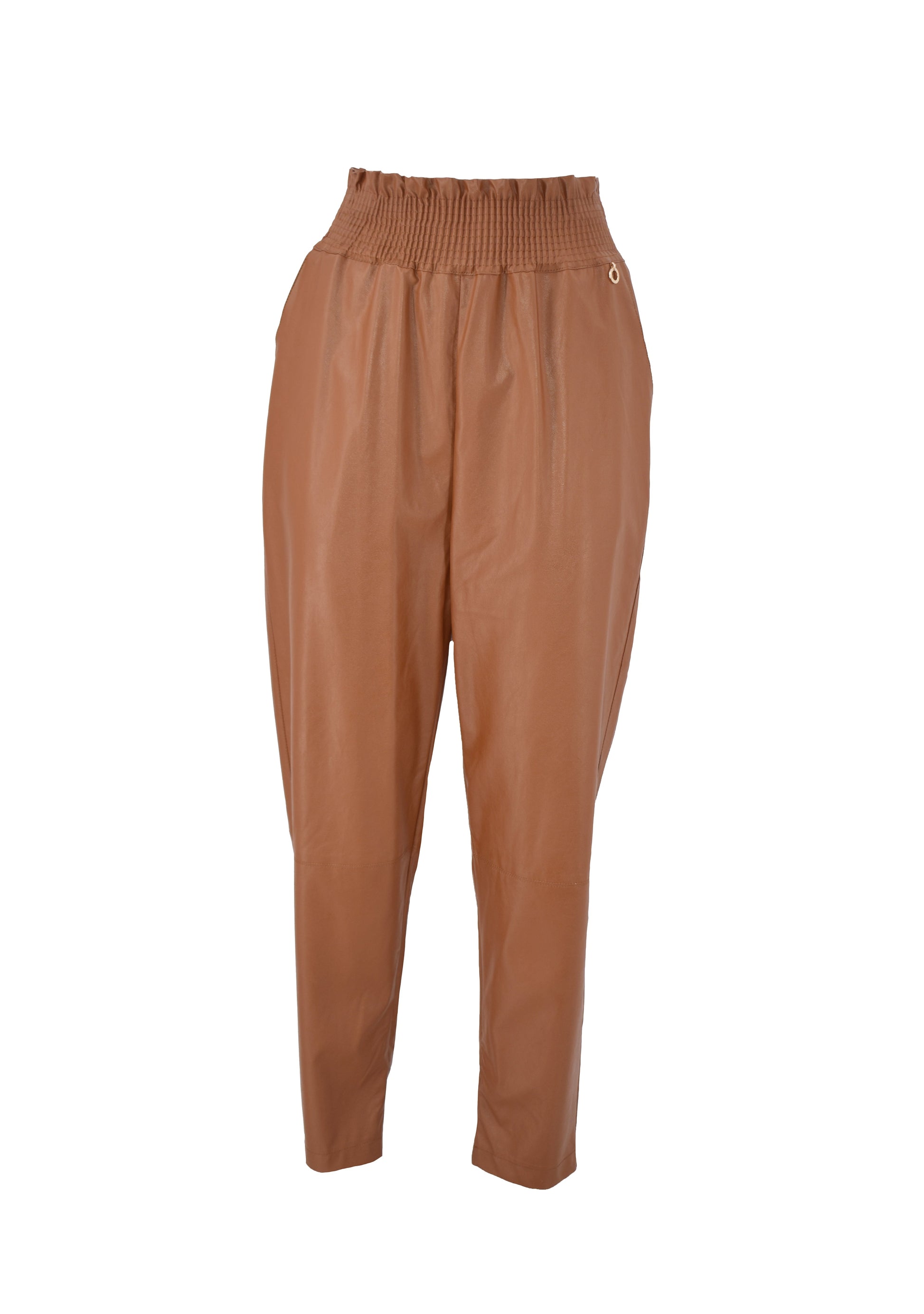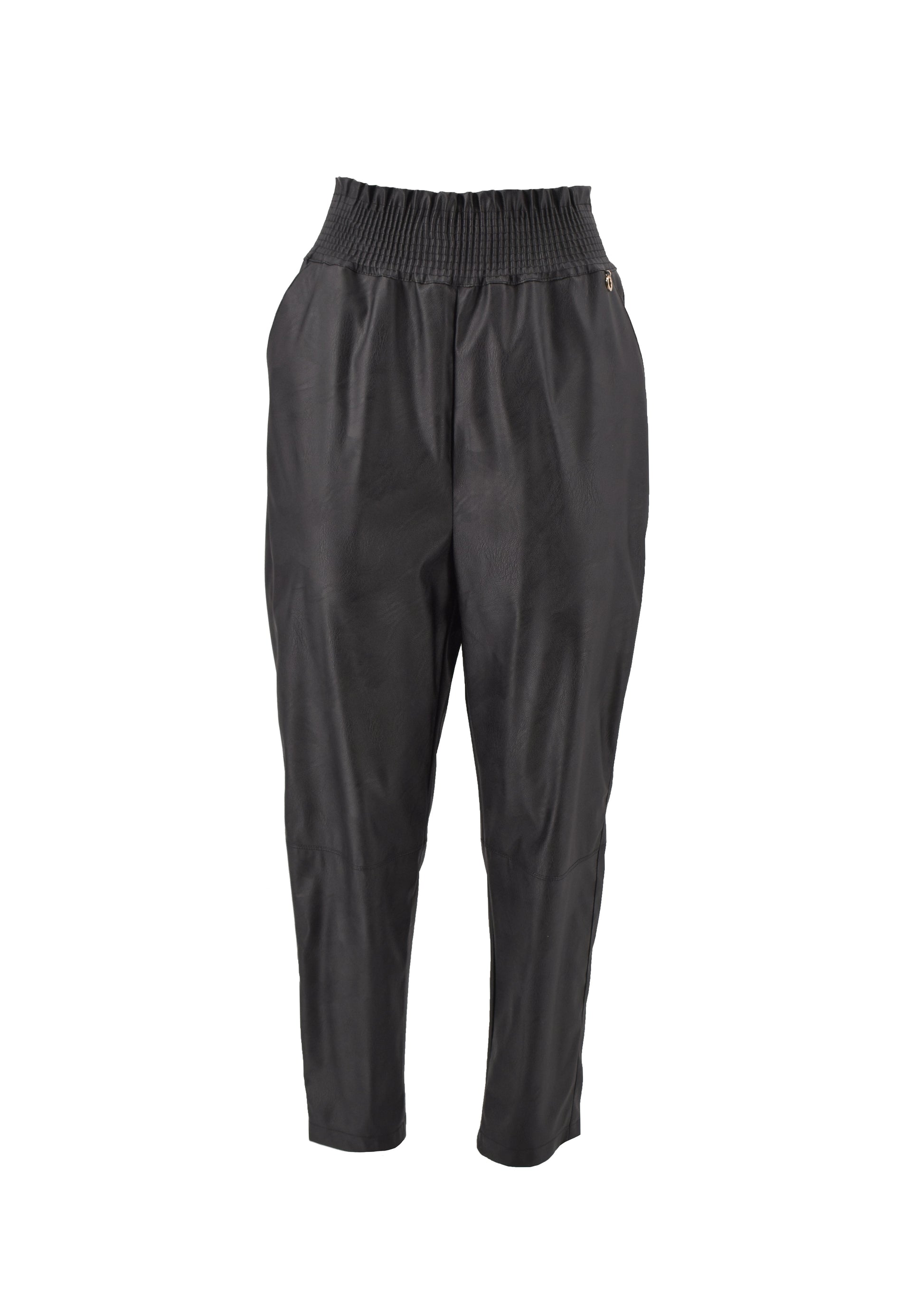 SOGGU 高腰长裤,带皱褶缝线和人造皮口袋