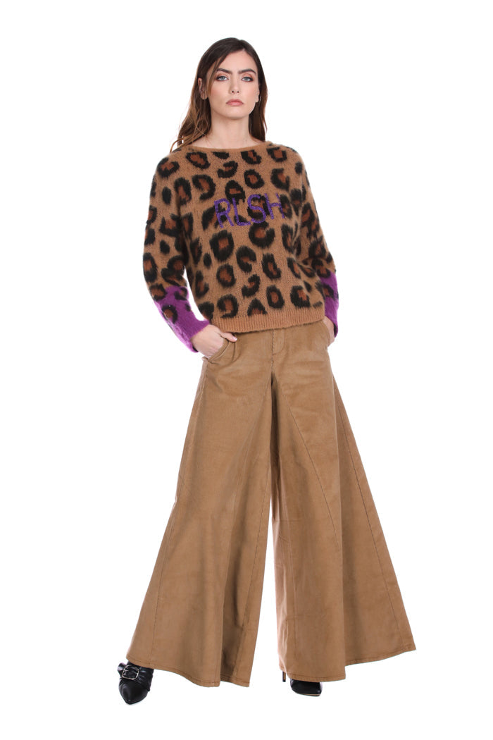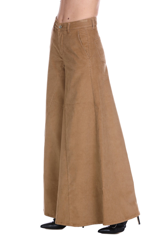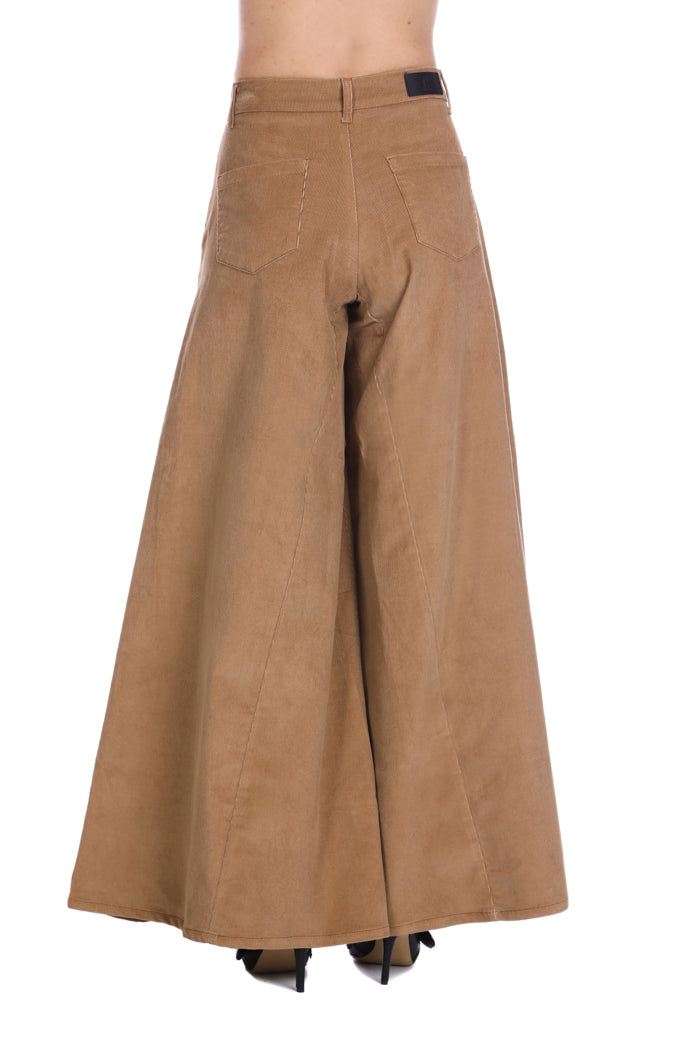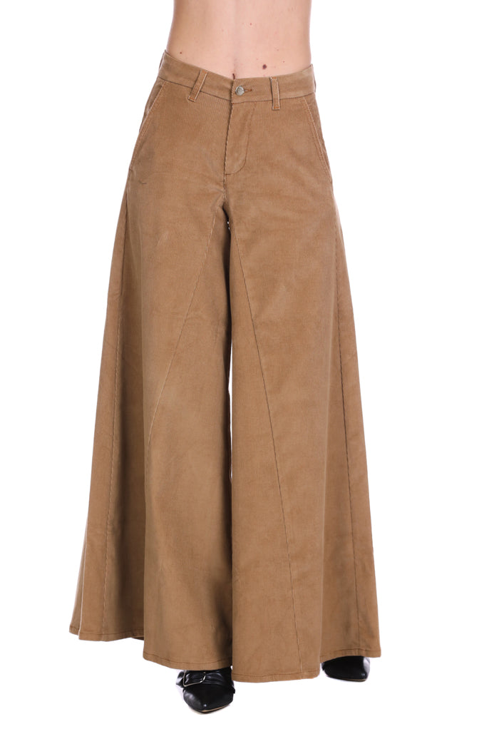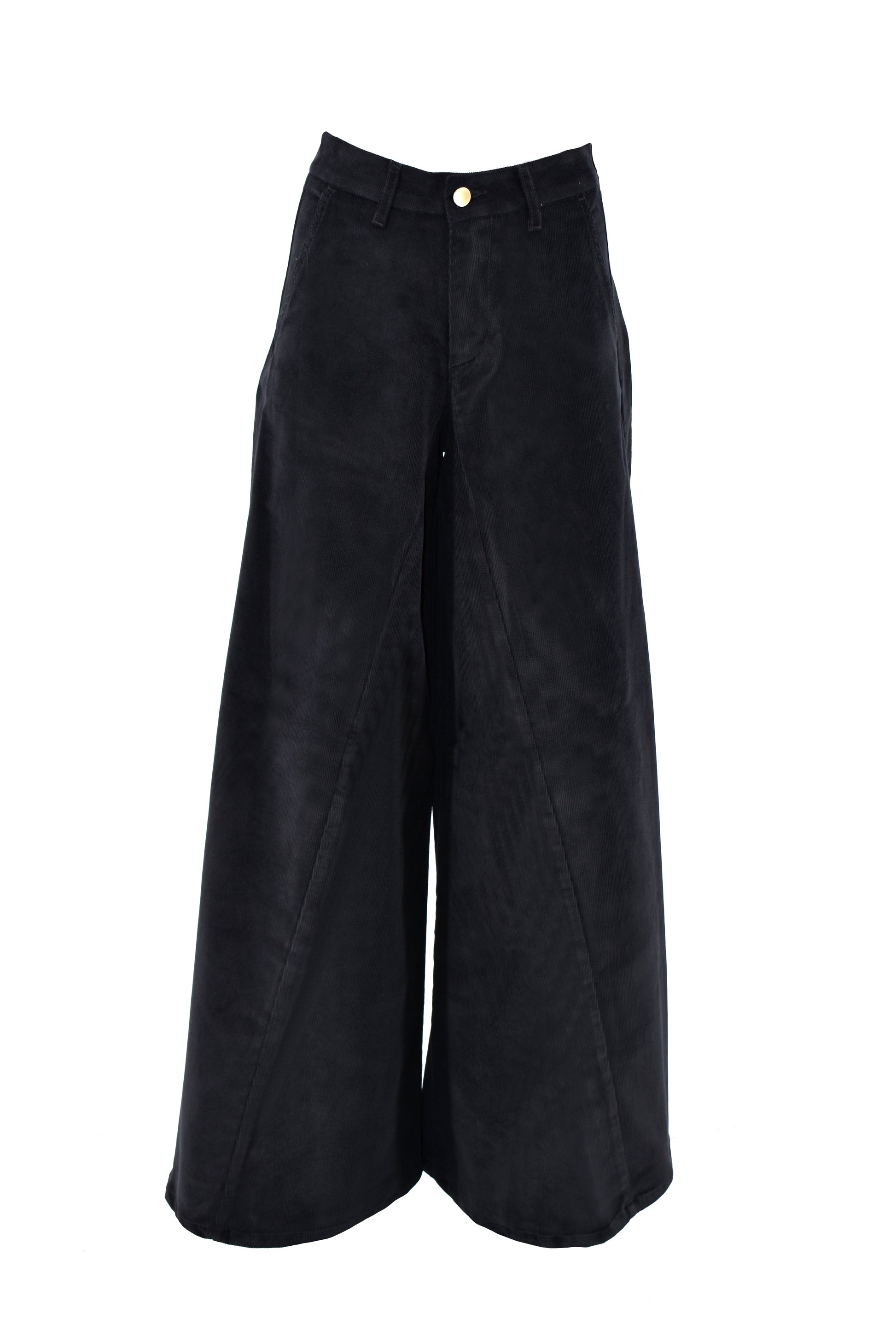 TUTALA法式口袋丝绒千条纹高腰阔腿裤