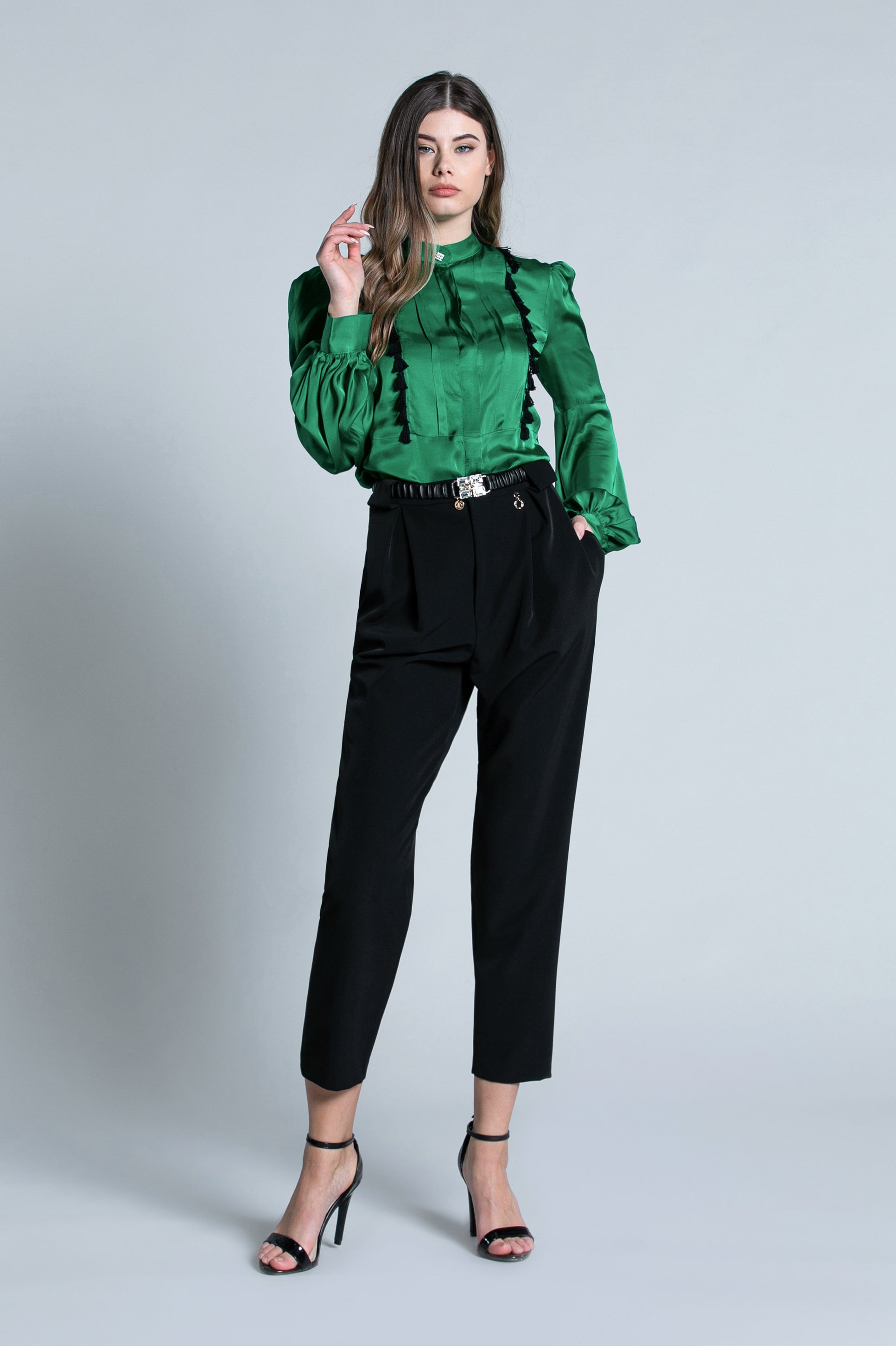 SETMUS 高腰长裤,褶皱加腰带环加口袋