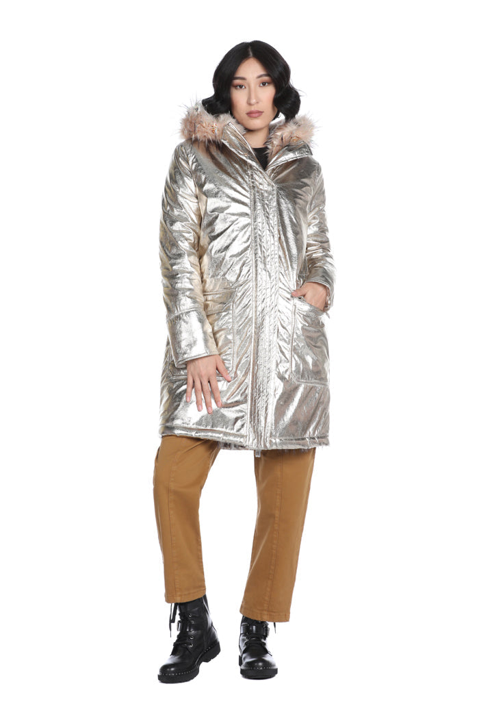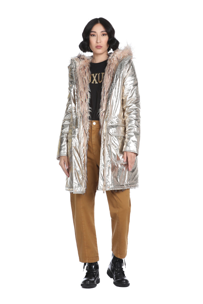 长袖 GETLEY 派克大衣,带兜帽,人造毛皮,口袋和层压抽绳