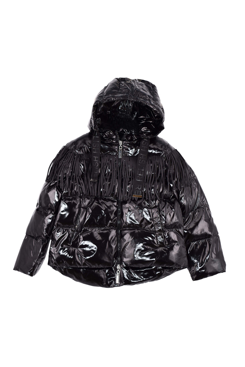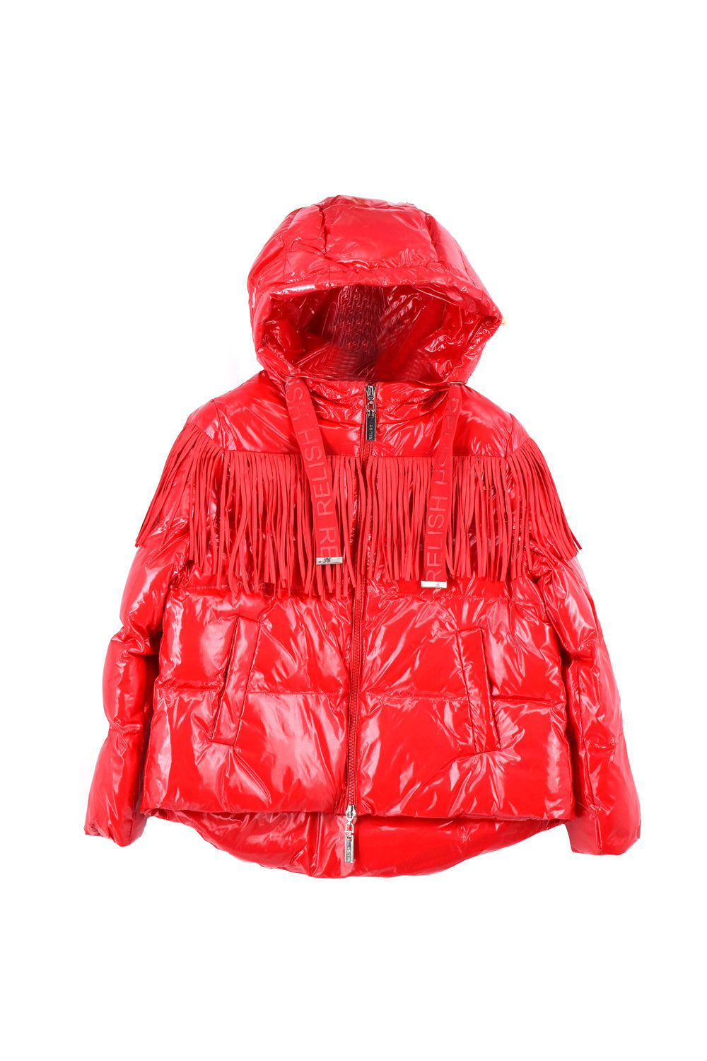 TURYE 女童羽绒服长袖短款连帽加罗缎印花加流苏