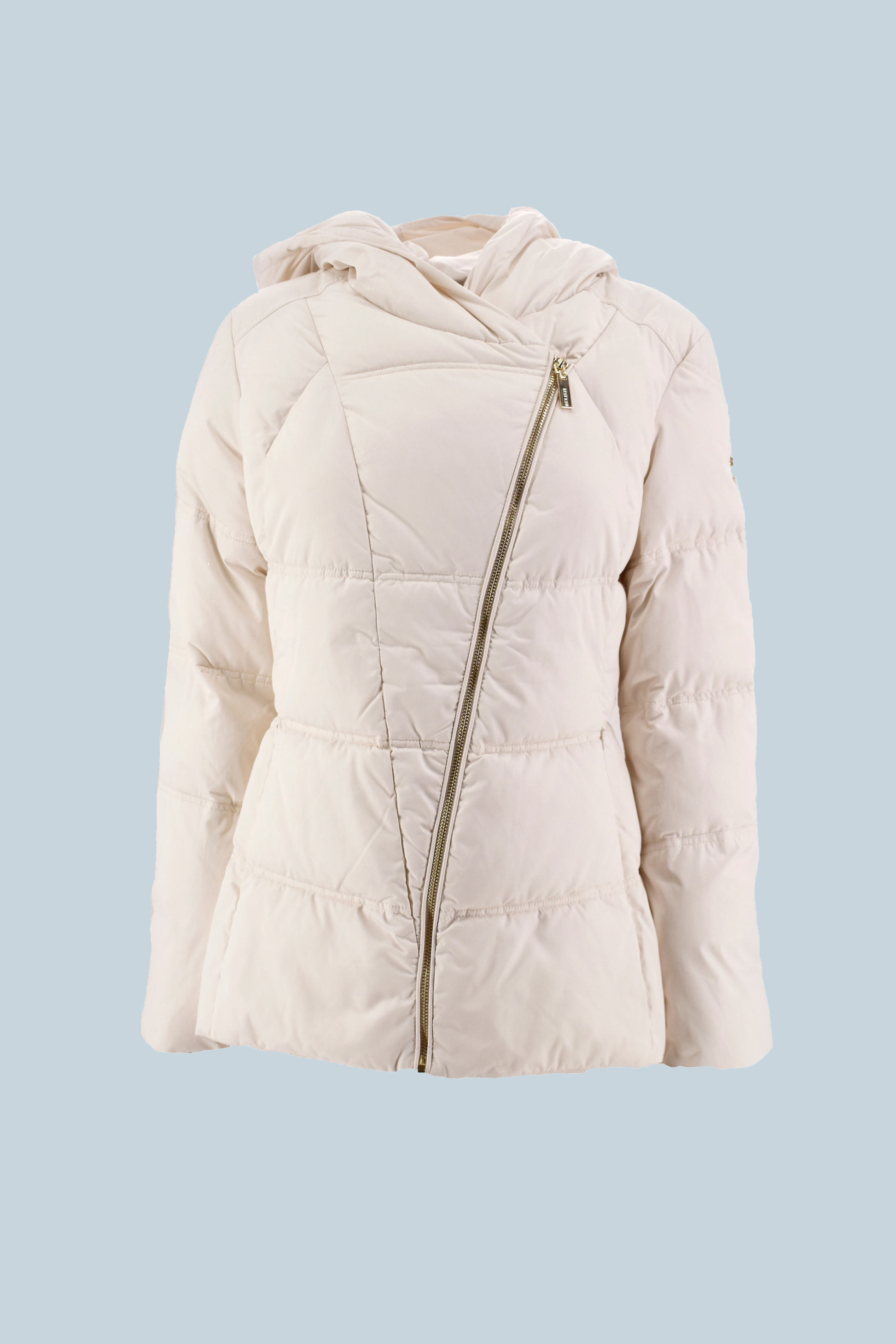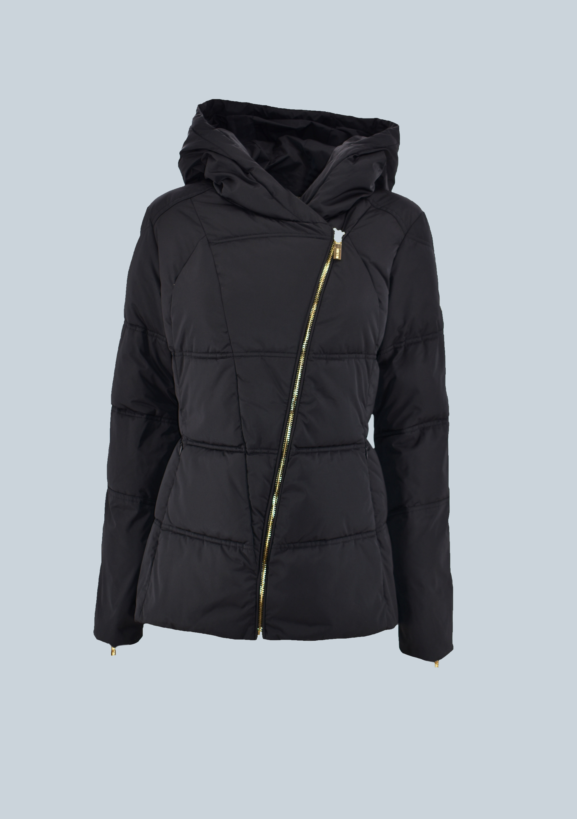 YLET_BIS 交叉拉链连帽短款羽绒服