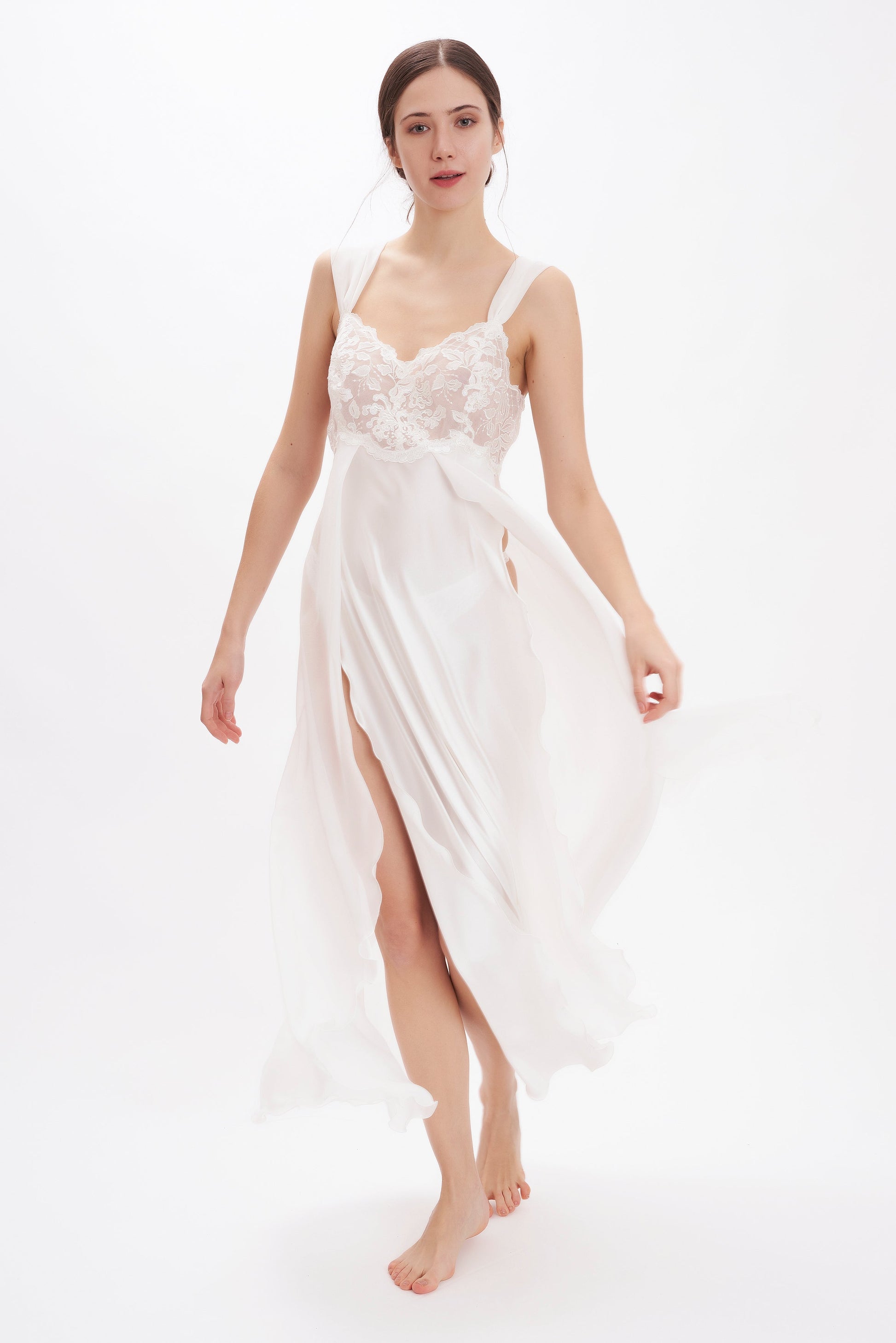 B2B - 丝缎乔其纱长睡衣