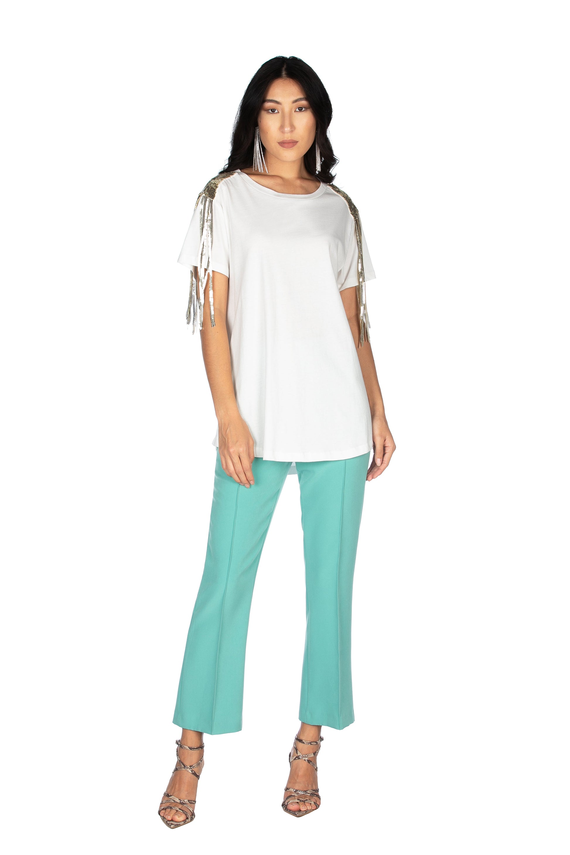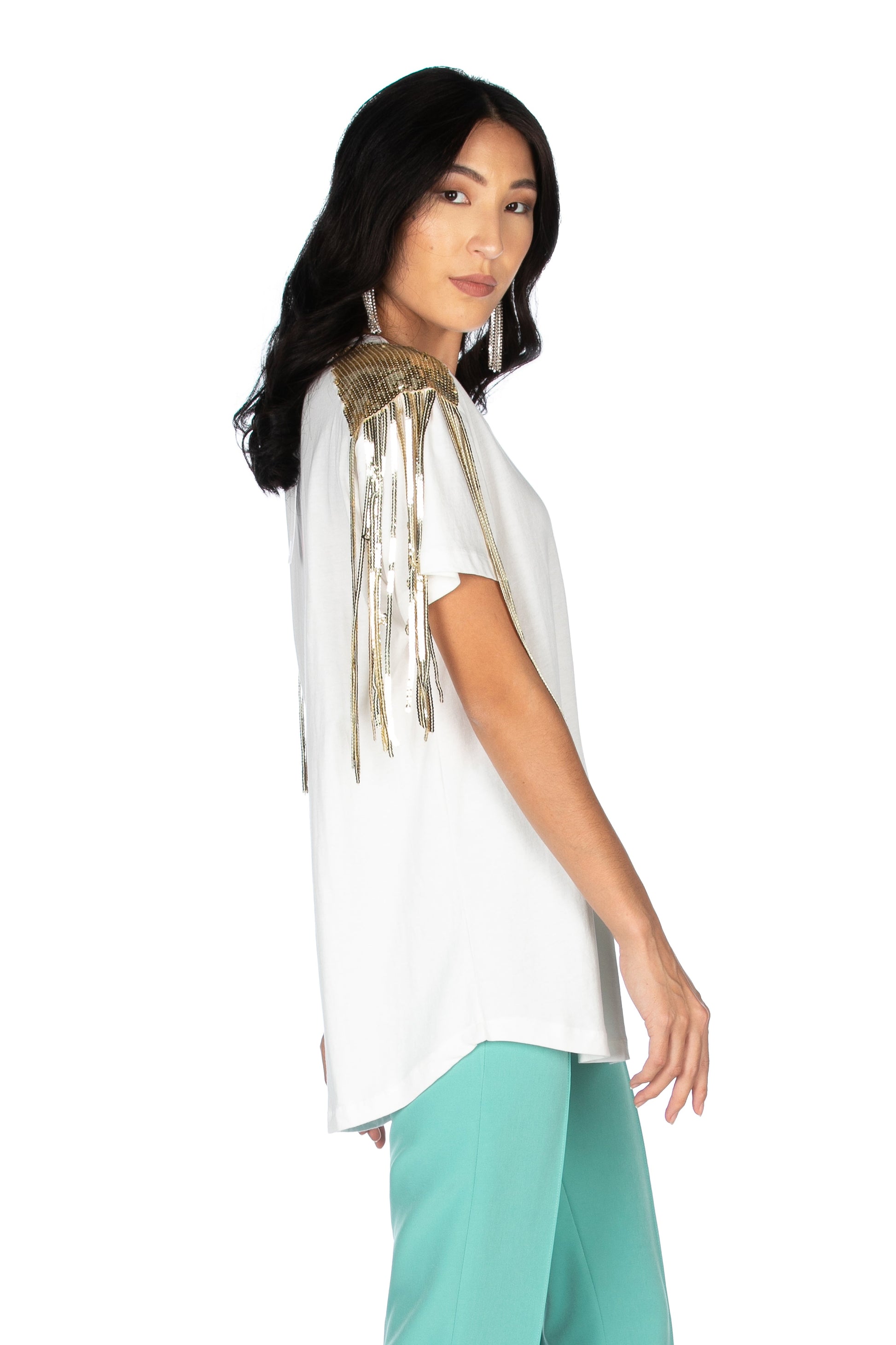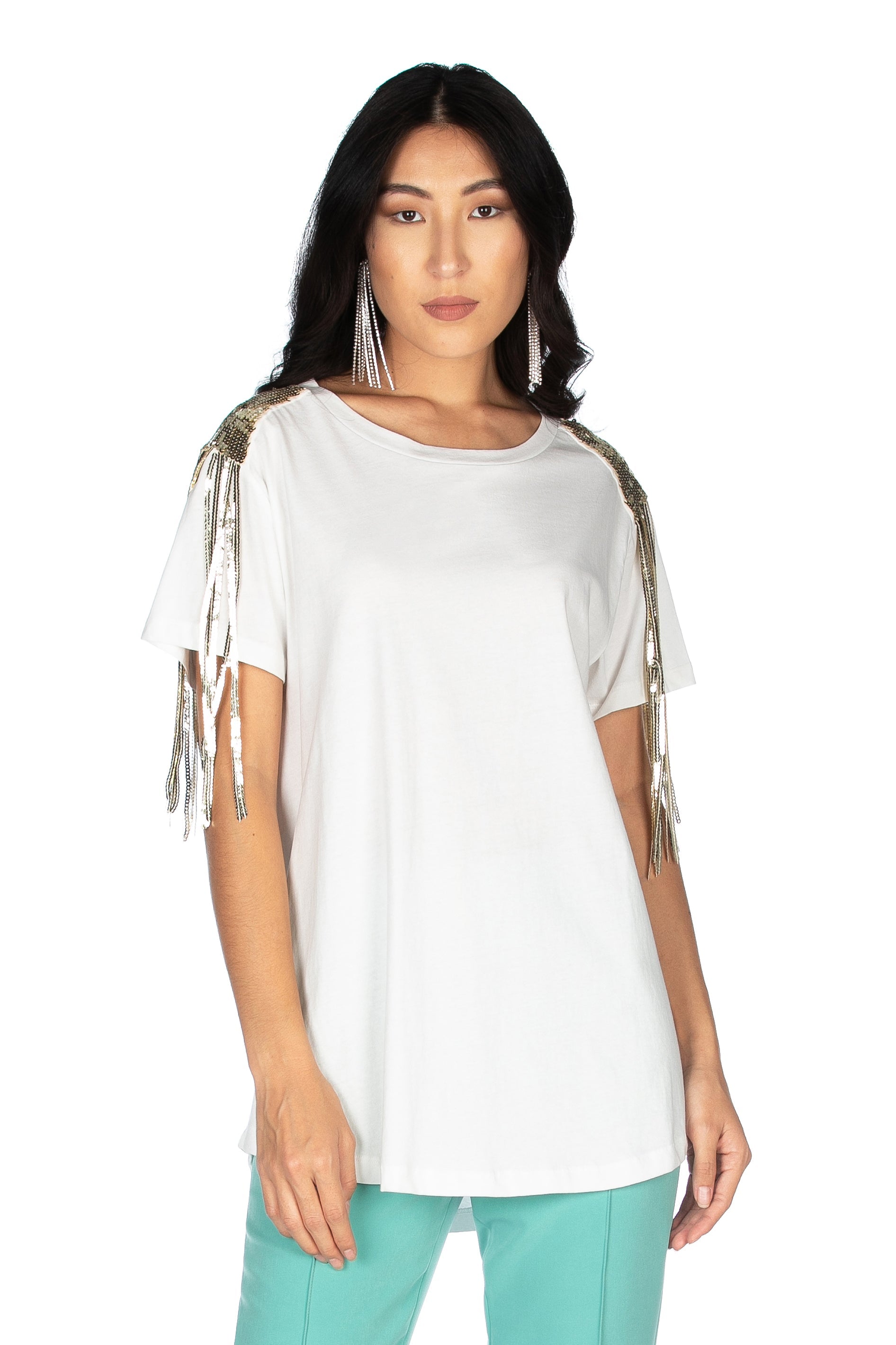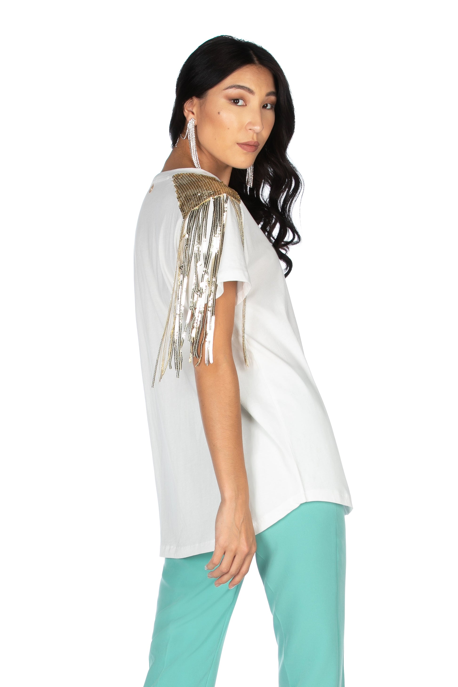 ALEZIAN 肩部亮片装饰短袖 T 恤