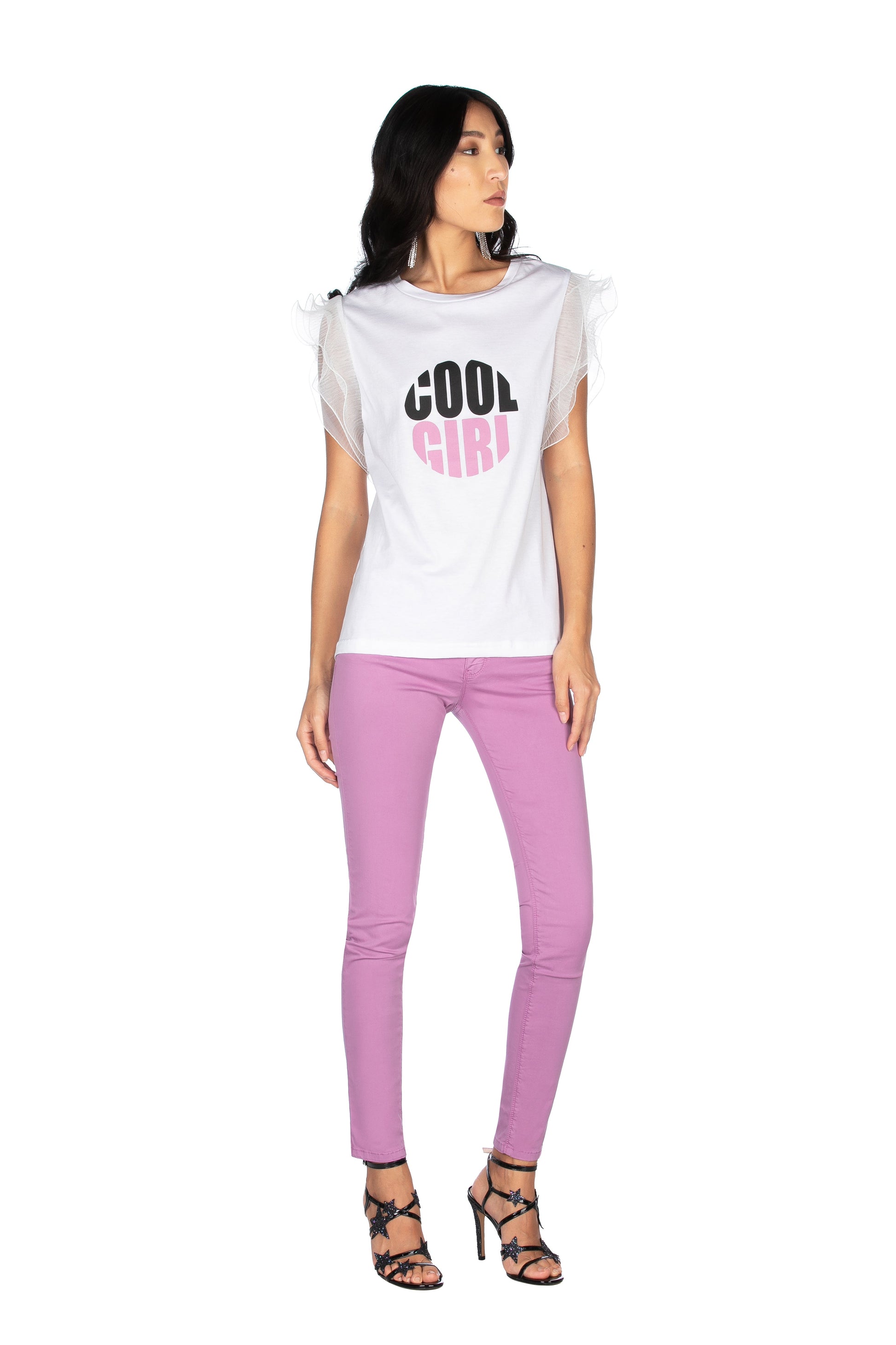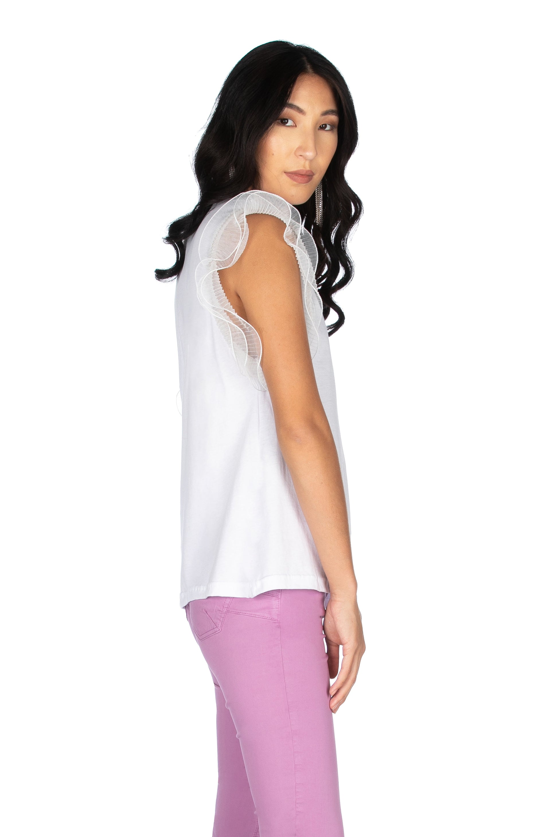 ALINA 半袖 T 恤,带薄纱褶饰加印花