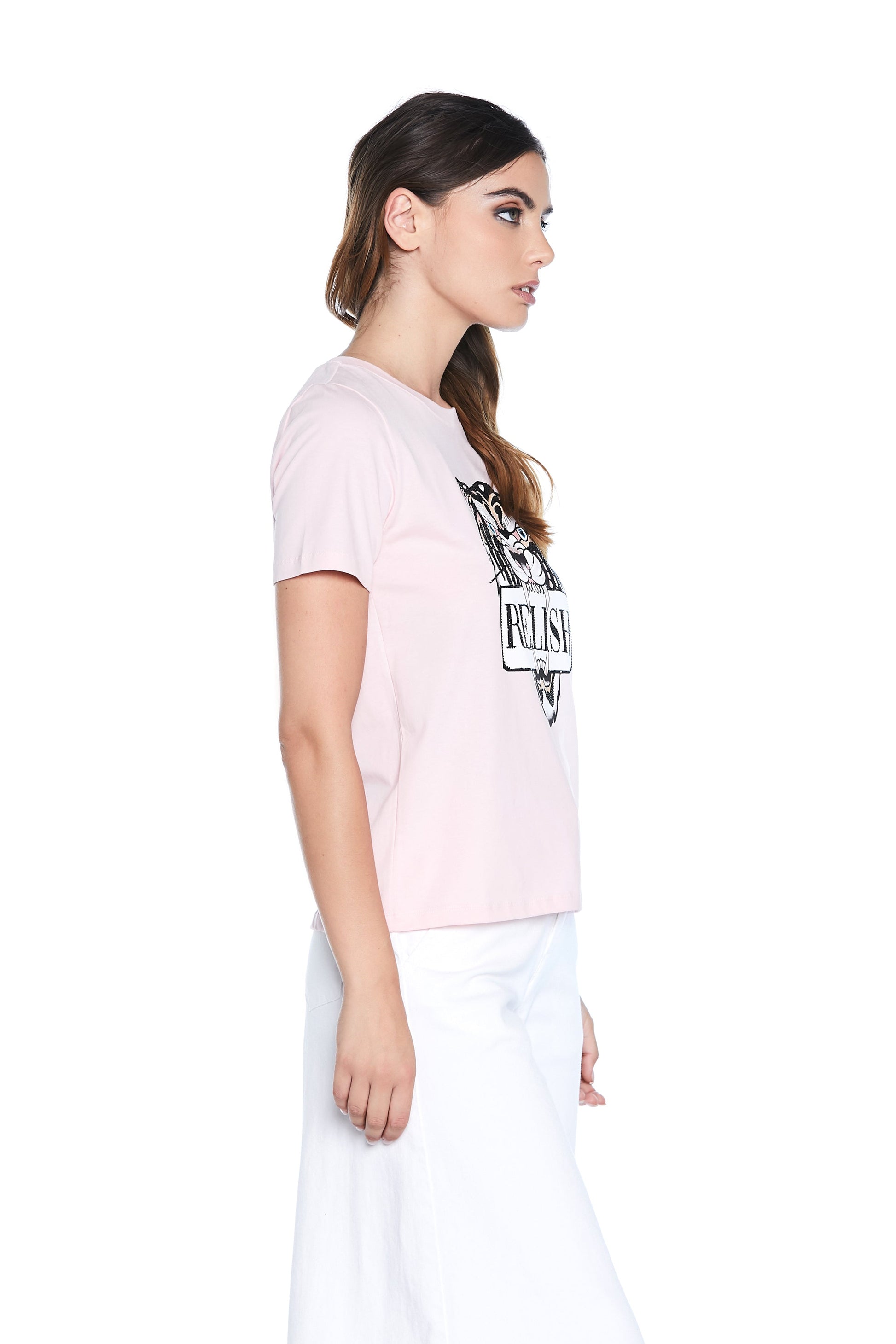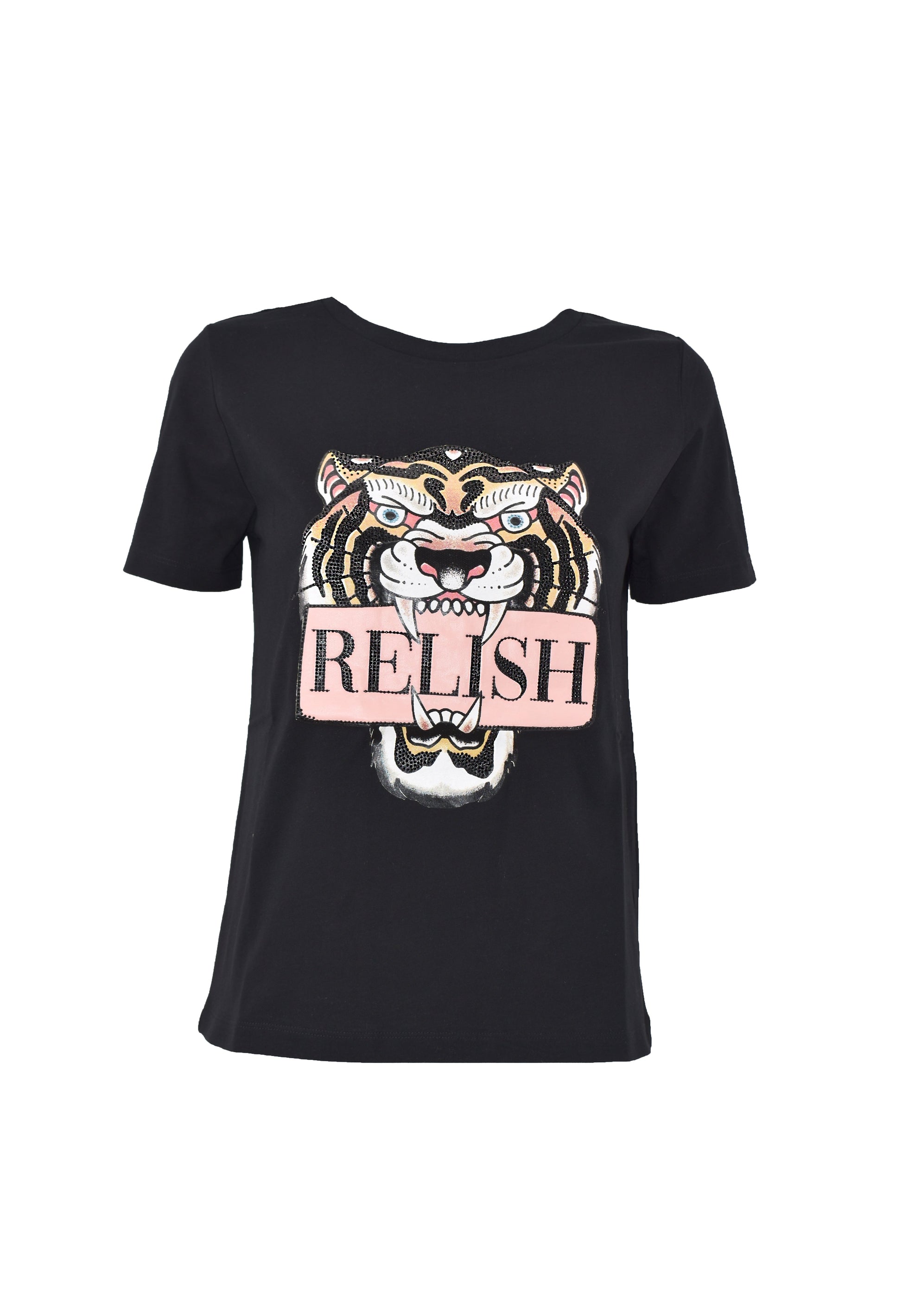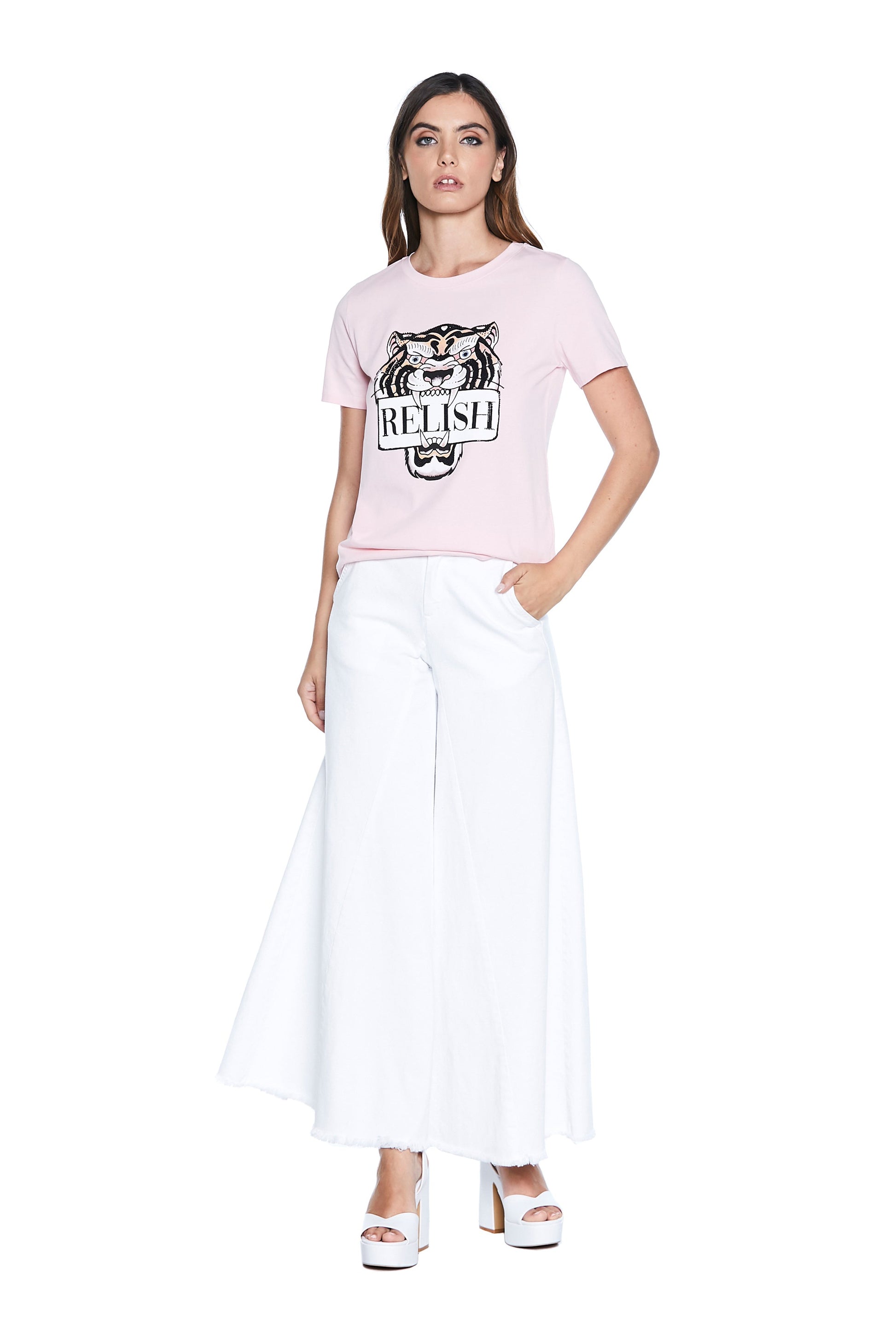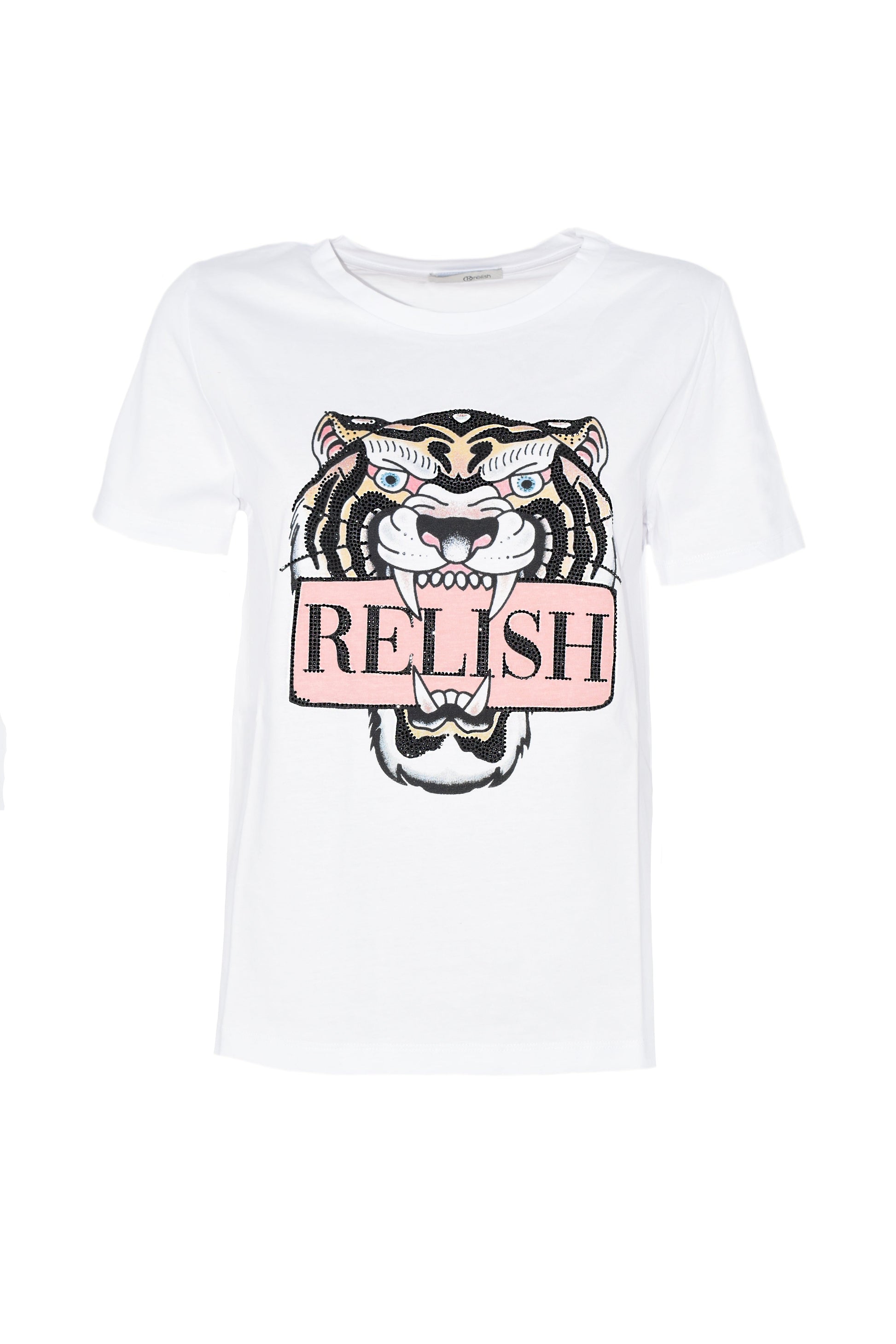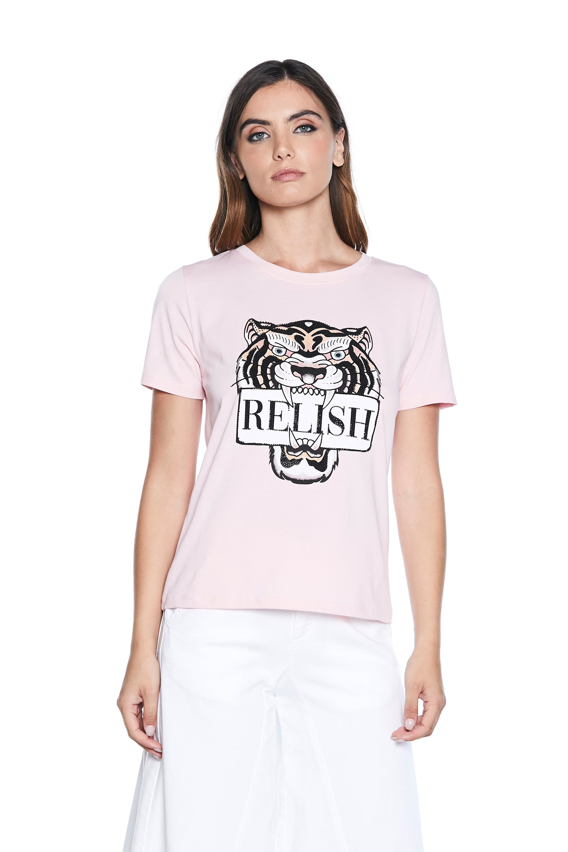 AMISSAN 半袖 T 恤与老虎印花加水钻应用