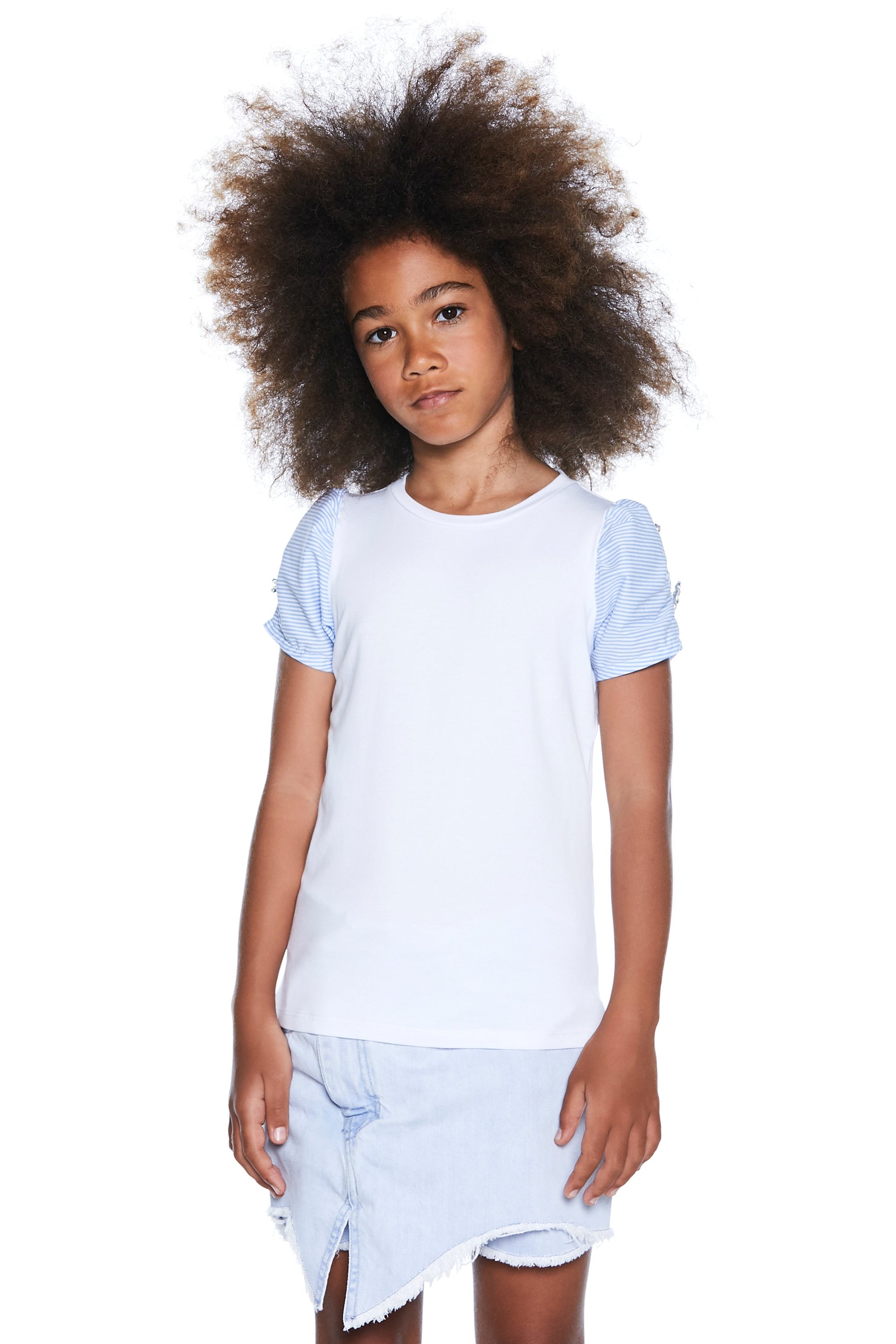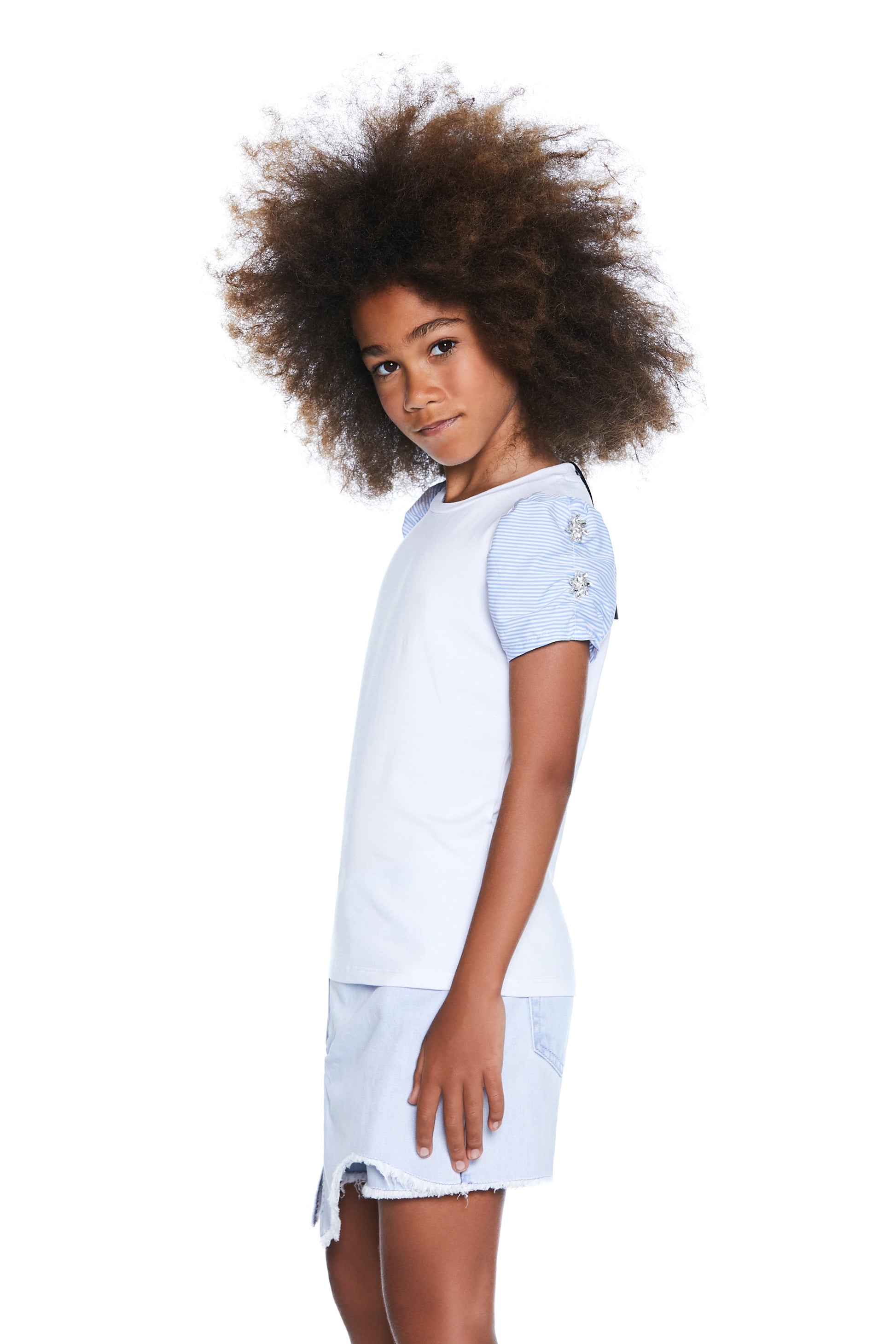 T 恤 GONDOLIERA 半袖条纹卷边加贴花。内部印有珠宝