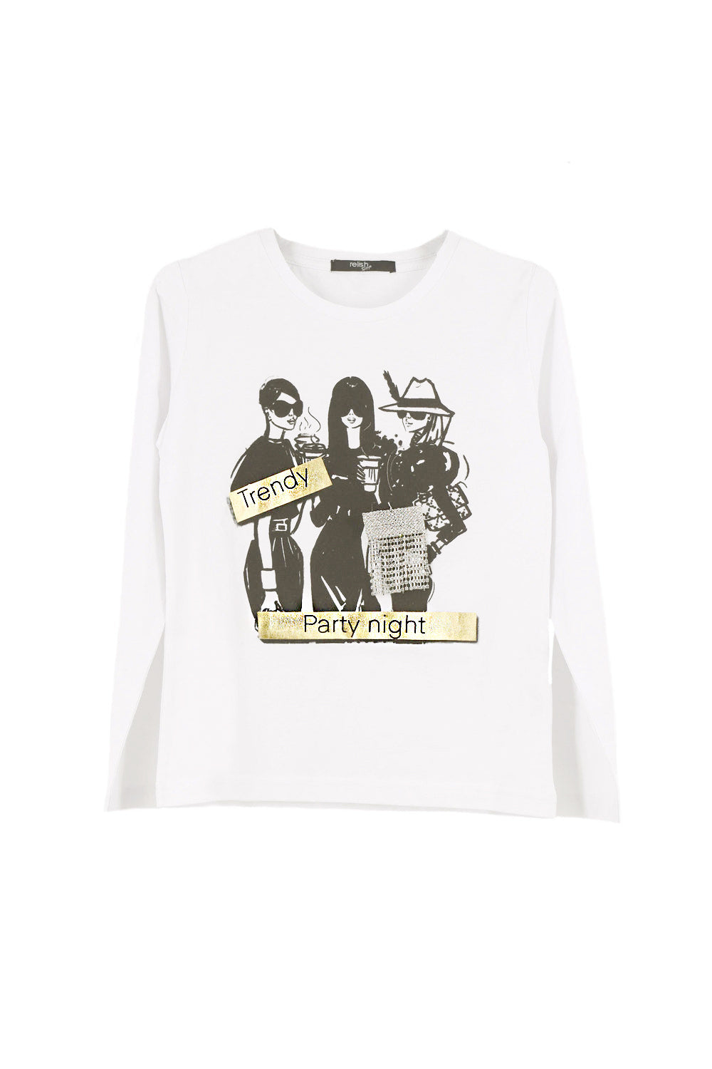 MELIU 女童 T 恤长袖派对金色印花加流苏水钻胸针