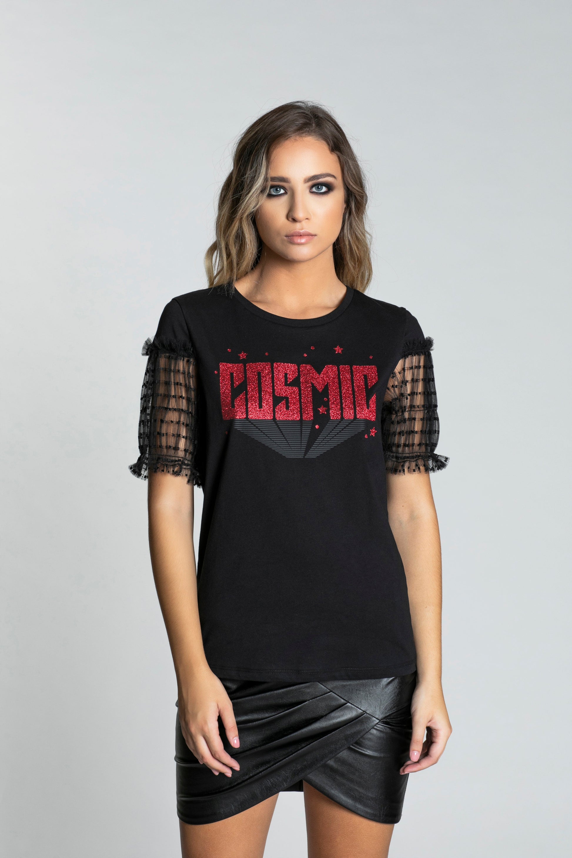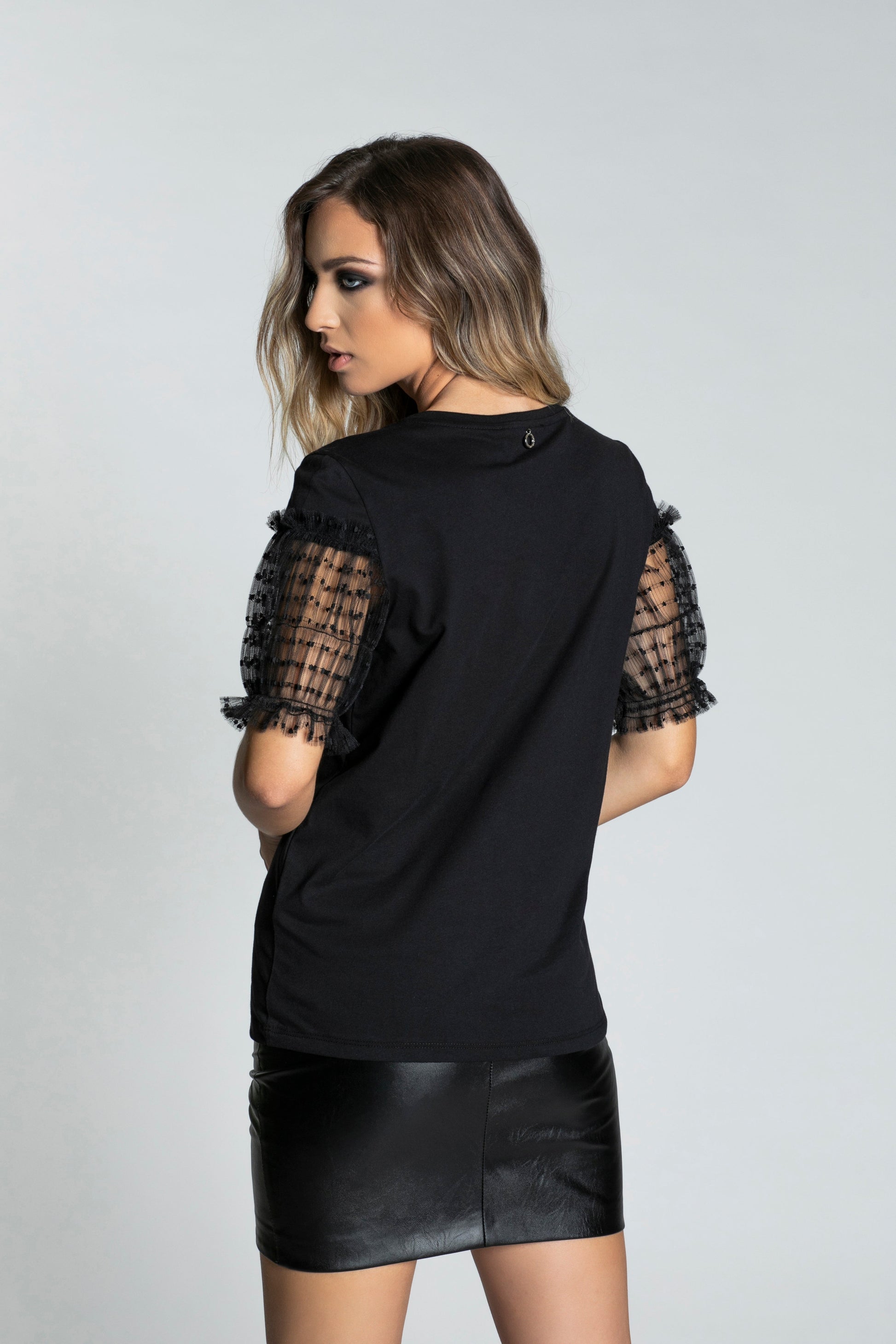 T 恤 PRIMAD 半袖薄纱 plumetis 荷叶边加印花