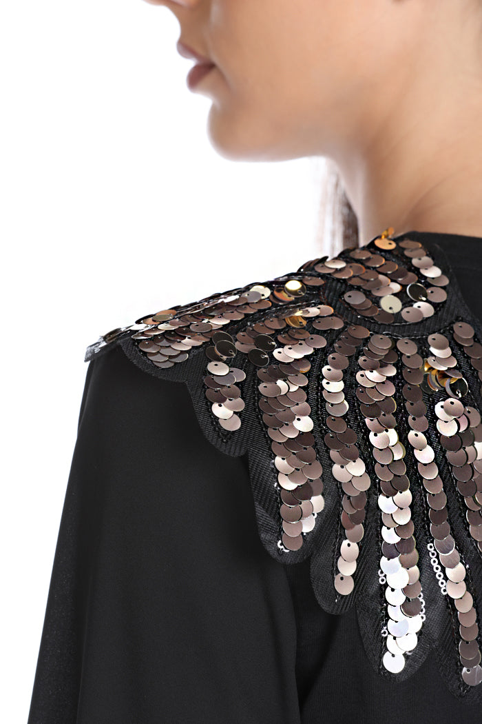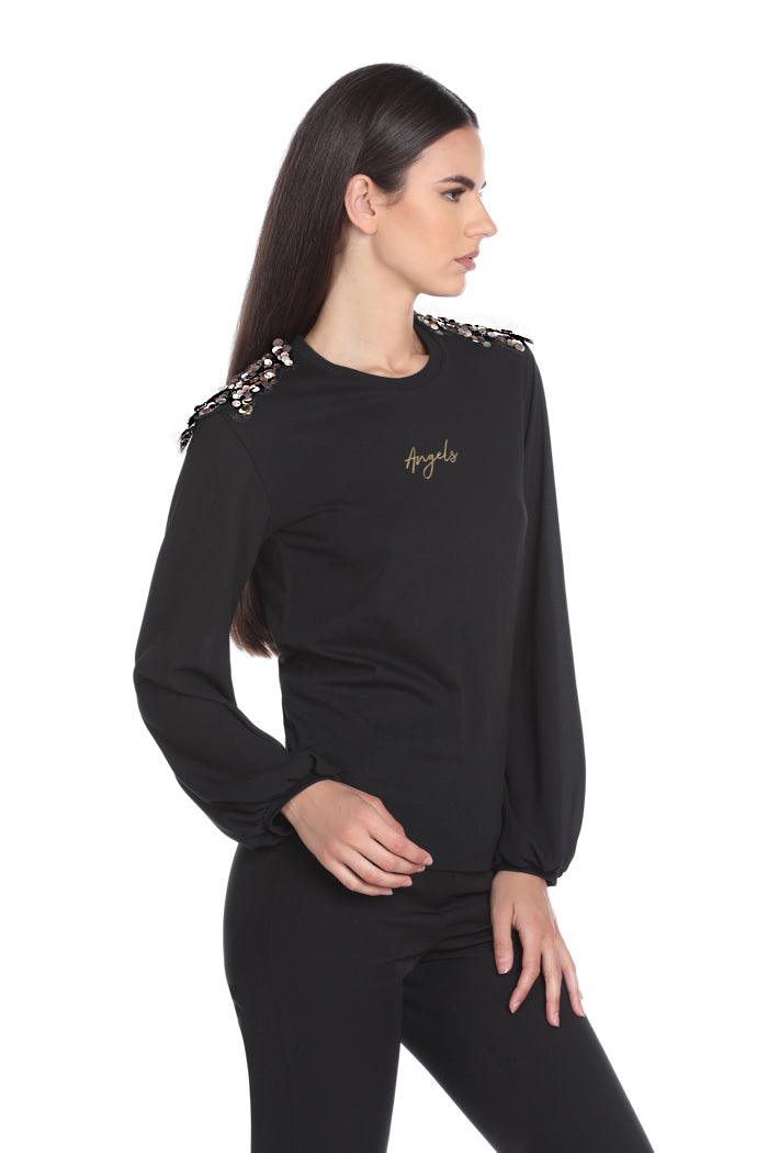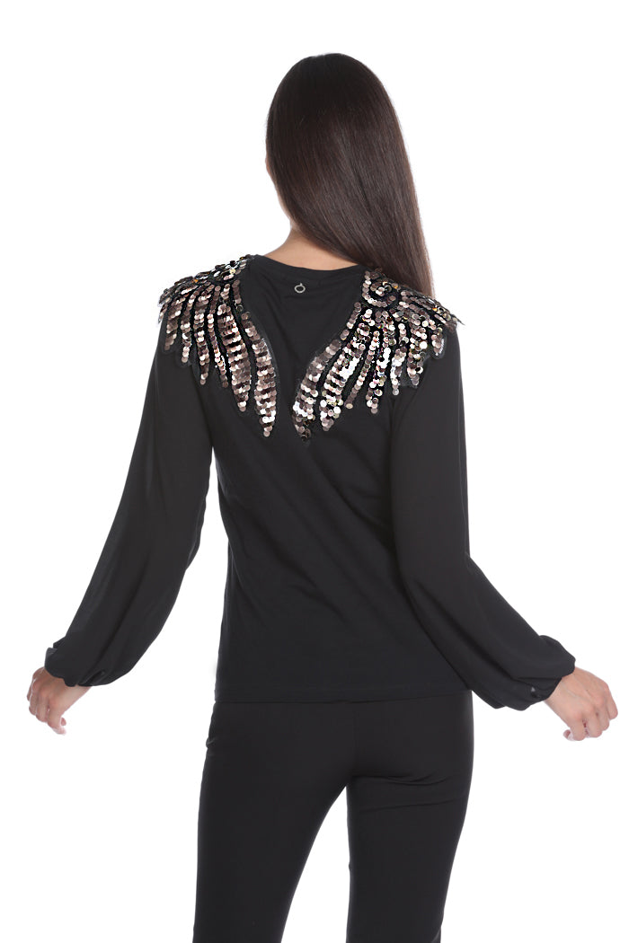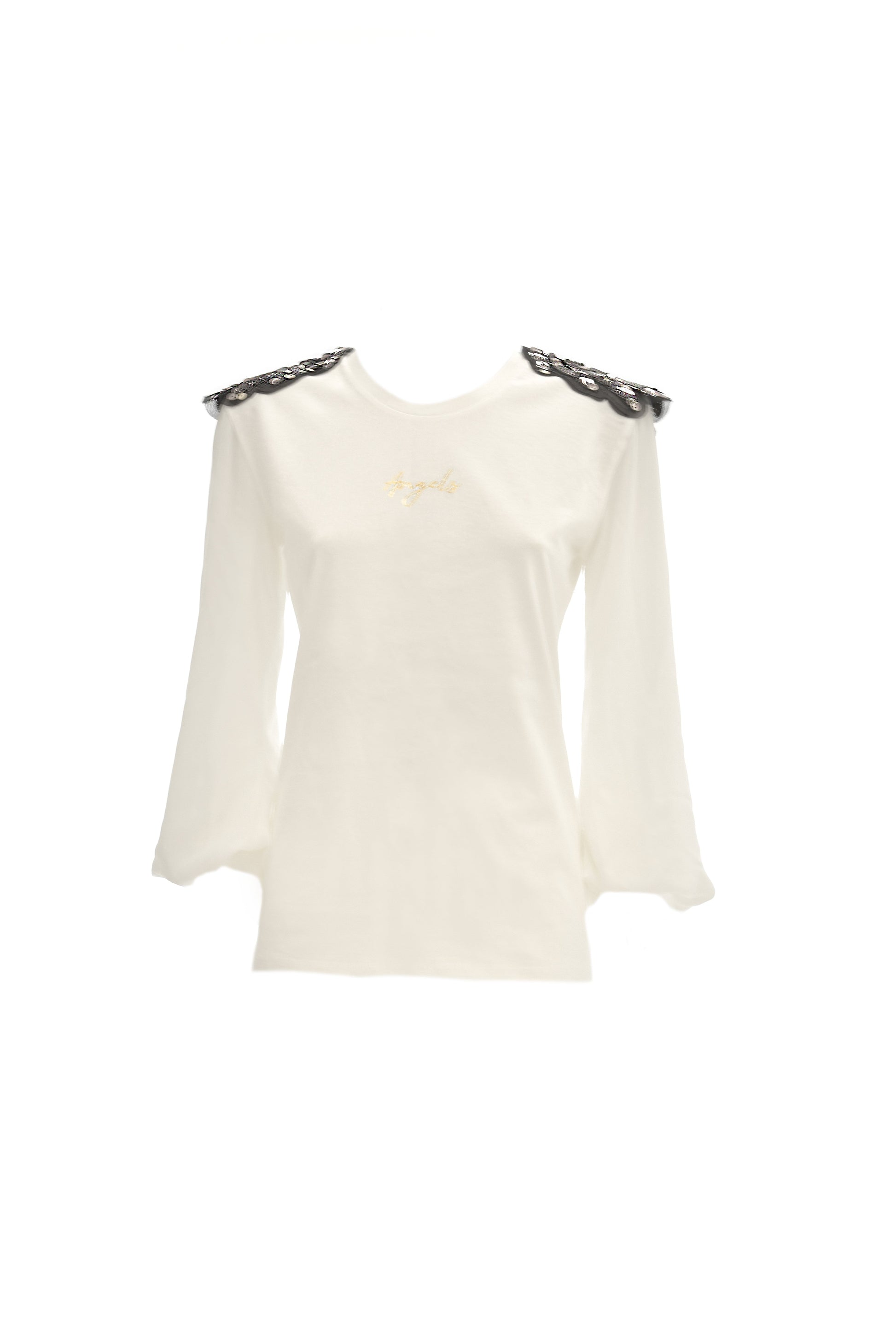 SALVY 翅膀贴饰印花长袖乔其纱 T 恤