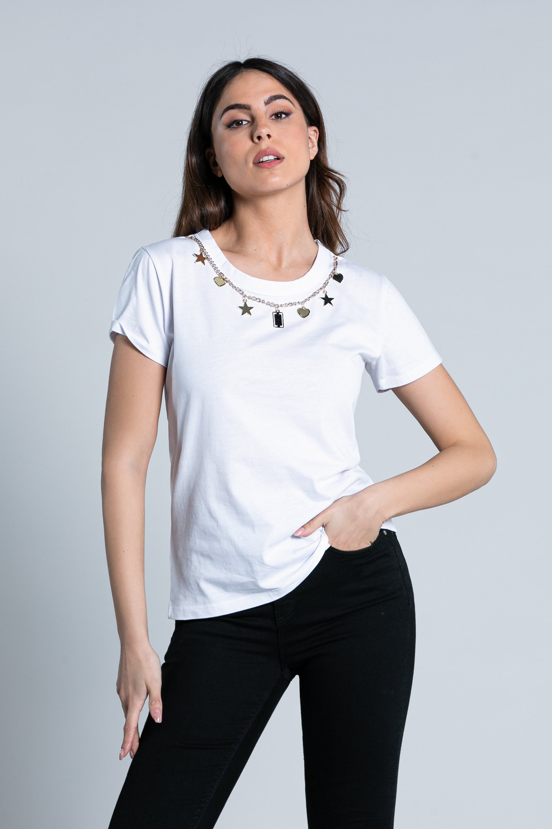 SAPPORO 半袖 T 恤配项链和吊坠