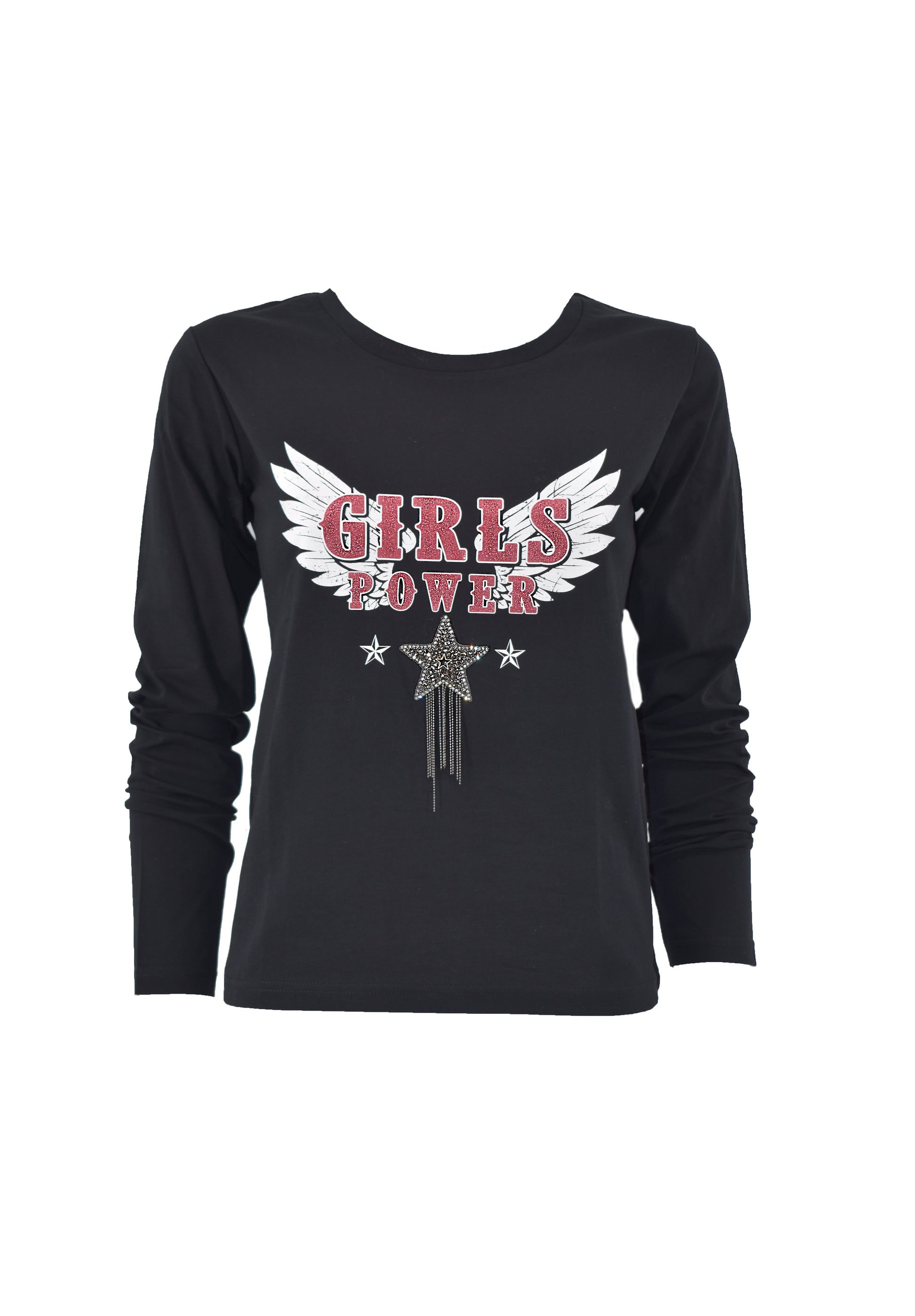 SERITUT_A 印花+贴花长袖T恤。明星水钻+头发+项链