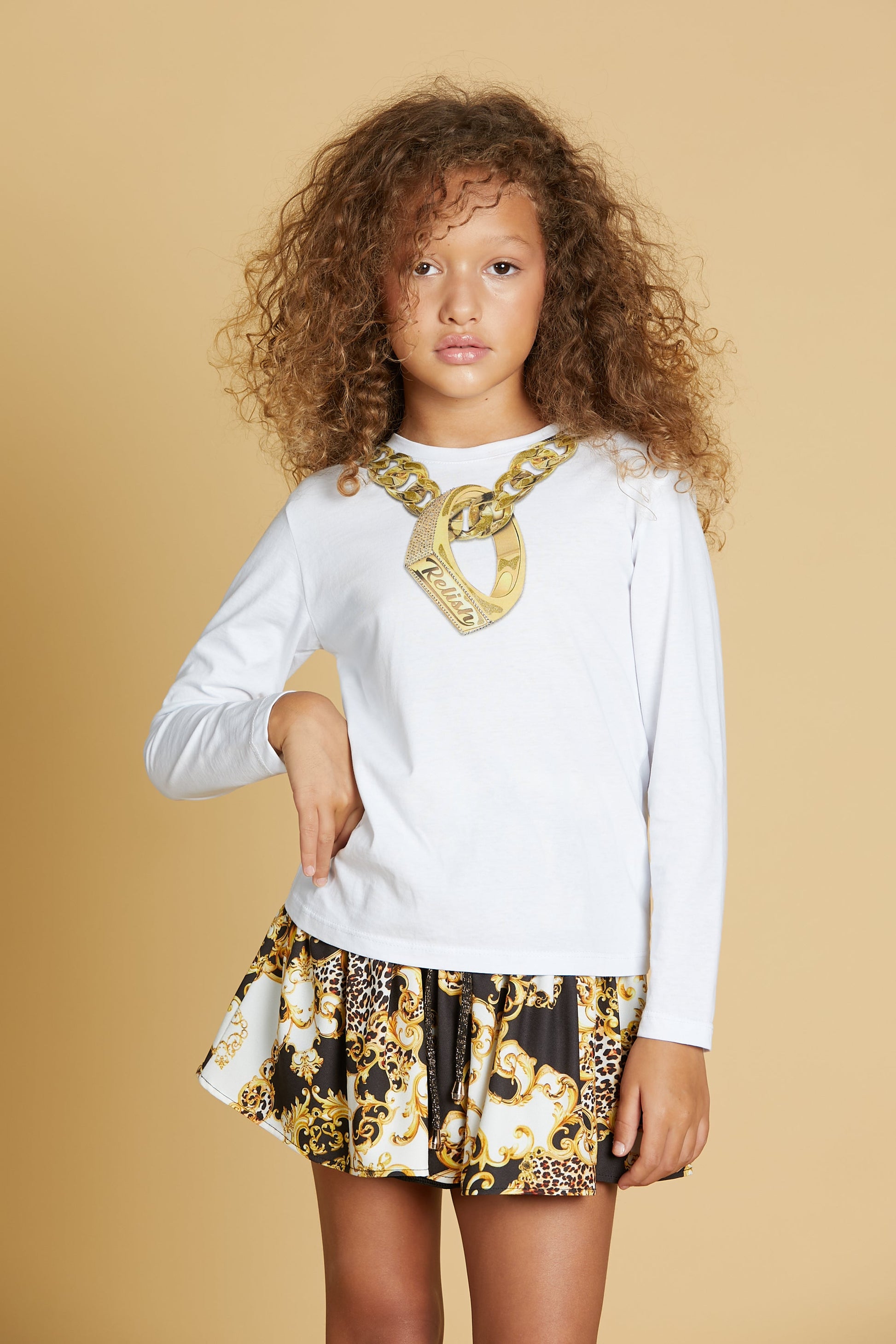 SERPENS 链条印花 T 恤加装饰环加水钻