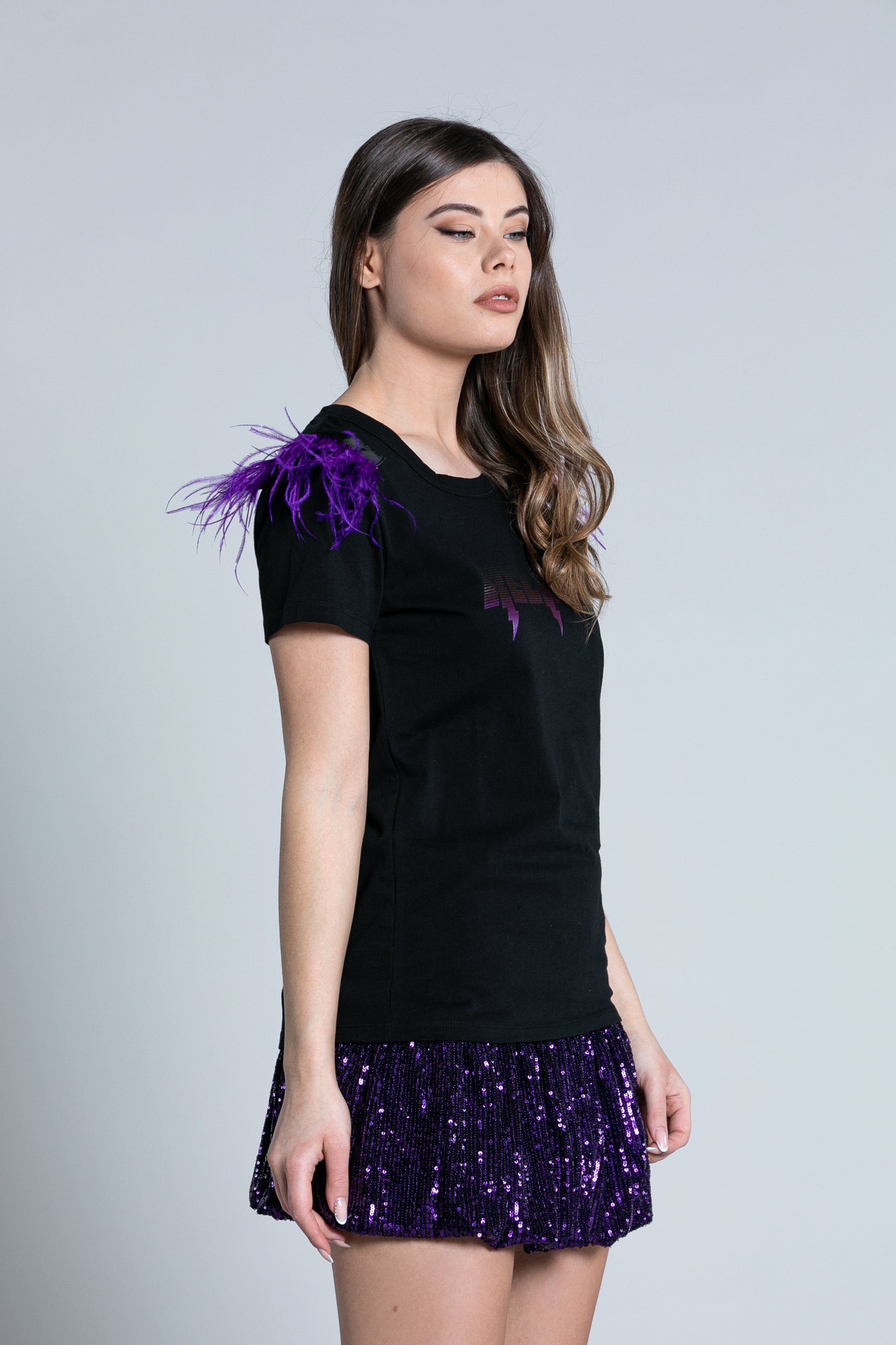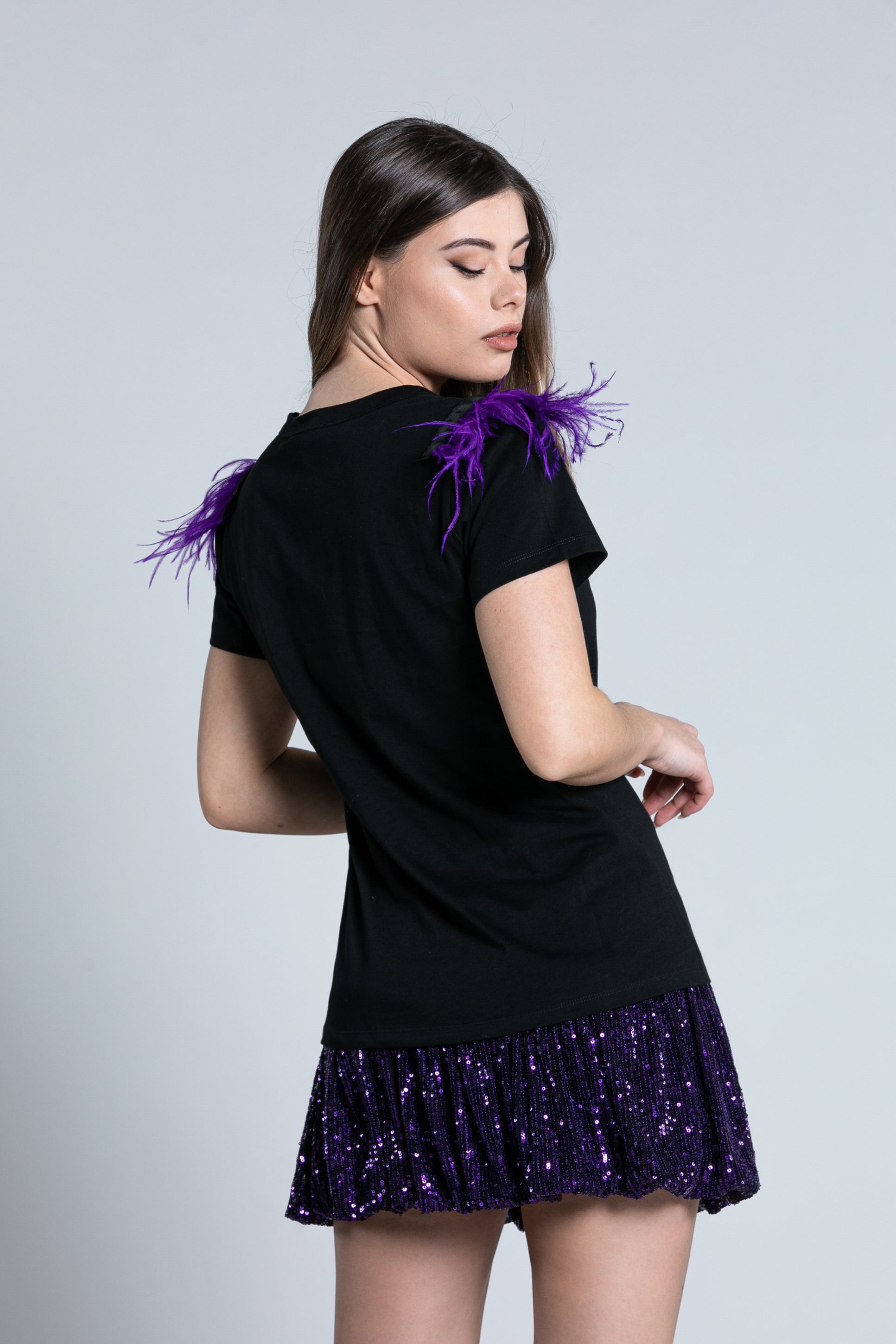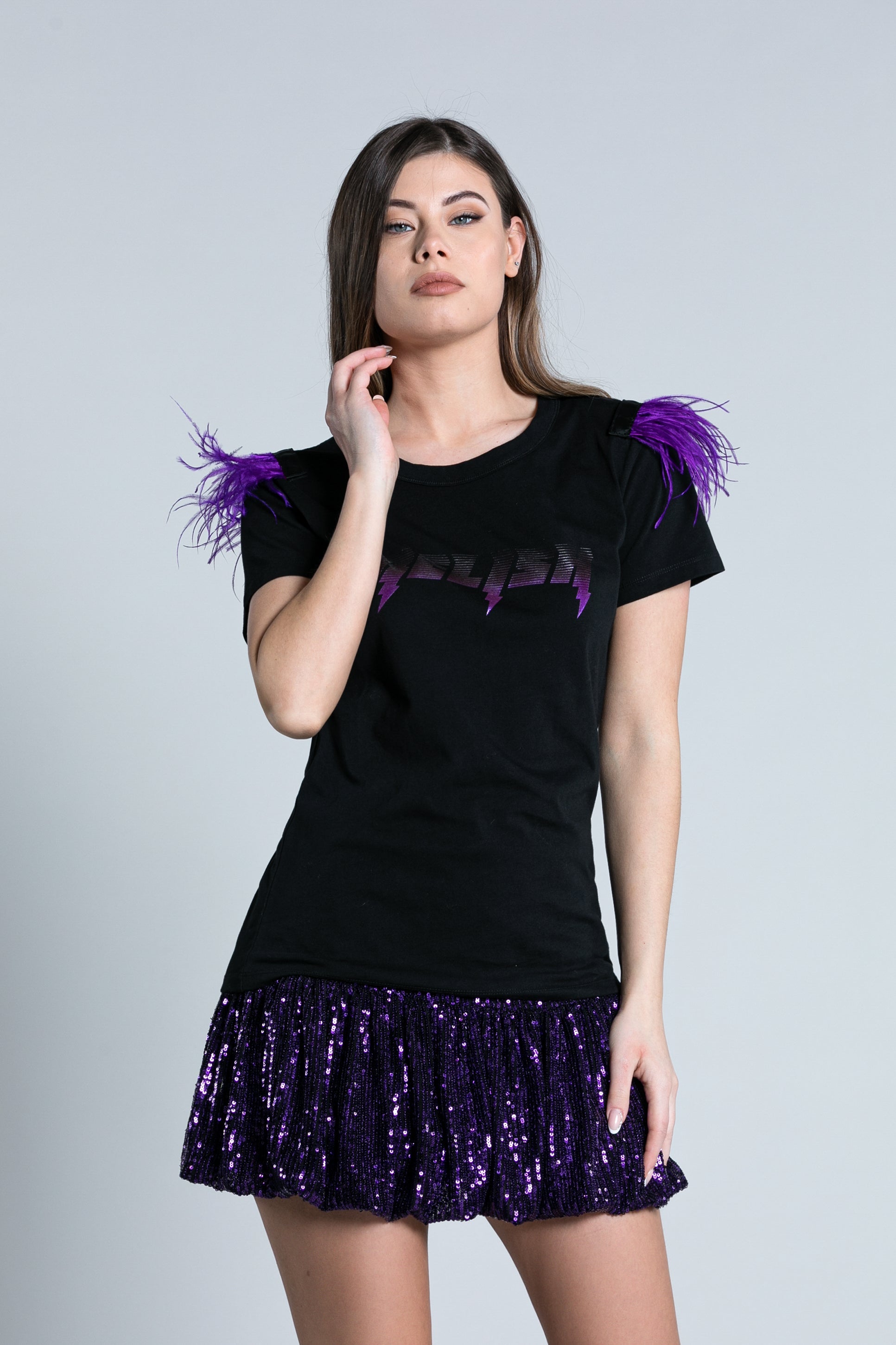 SHIBUYA 半袖 T 恤,带可拆卸羽毛和徽标印花