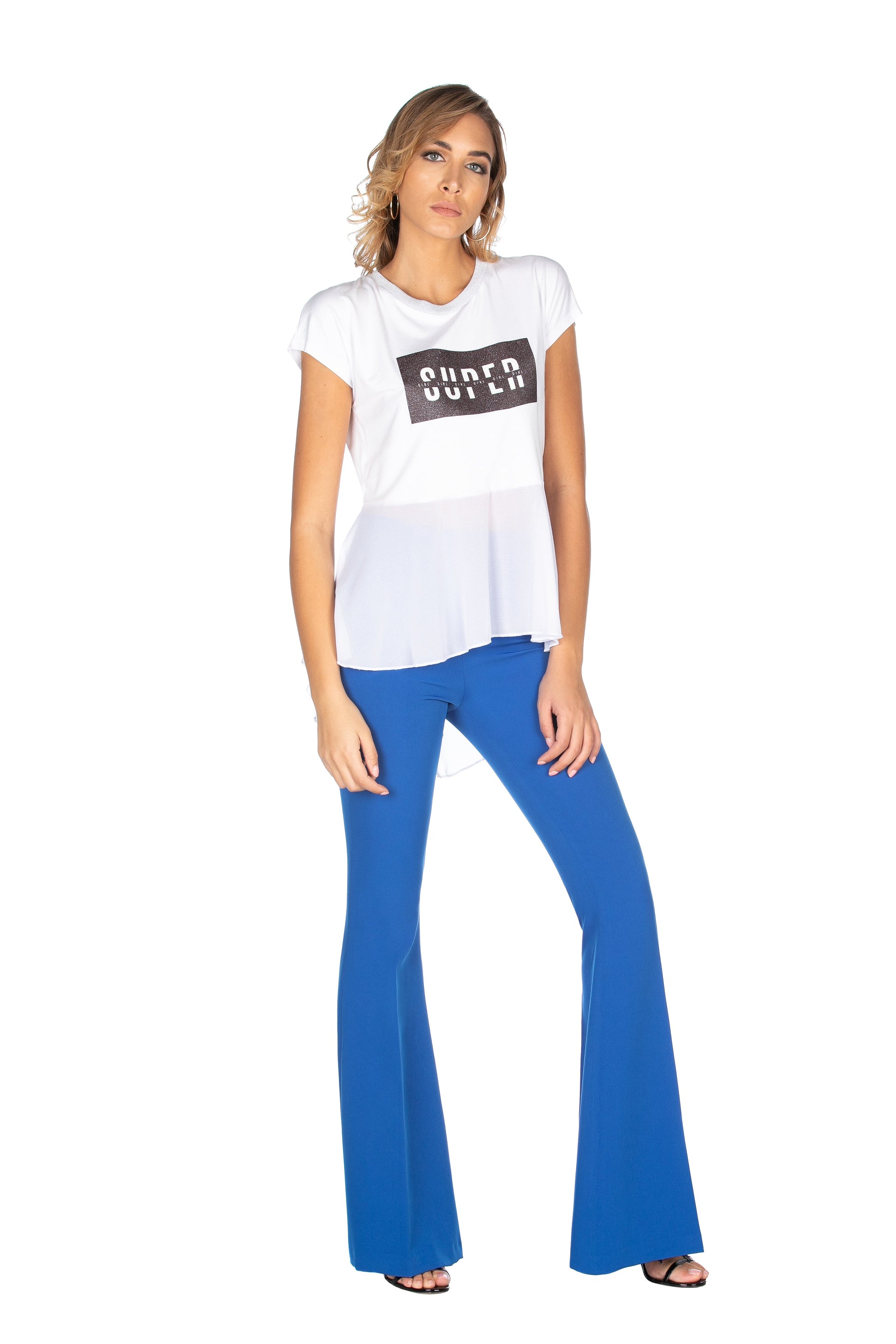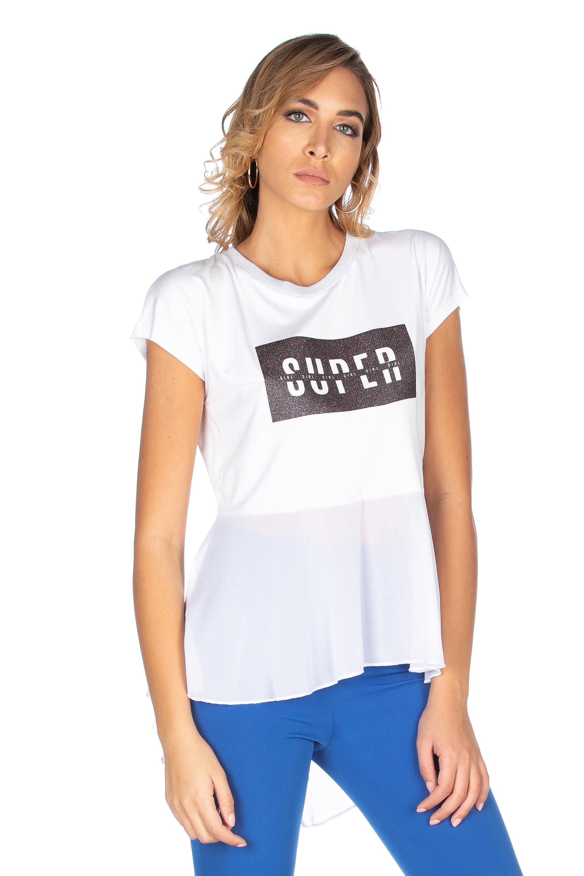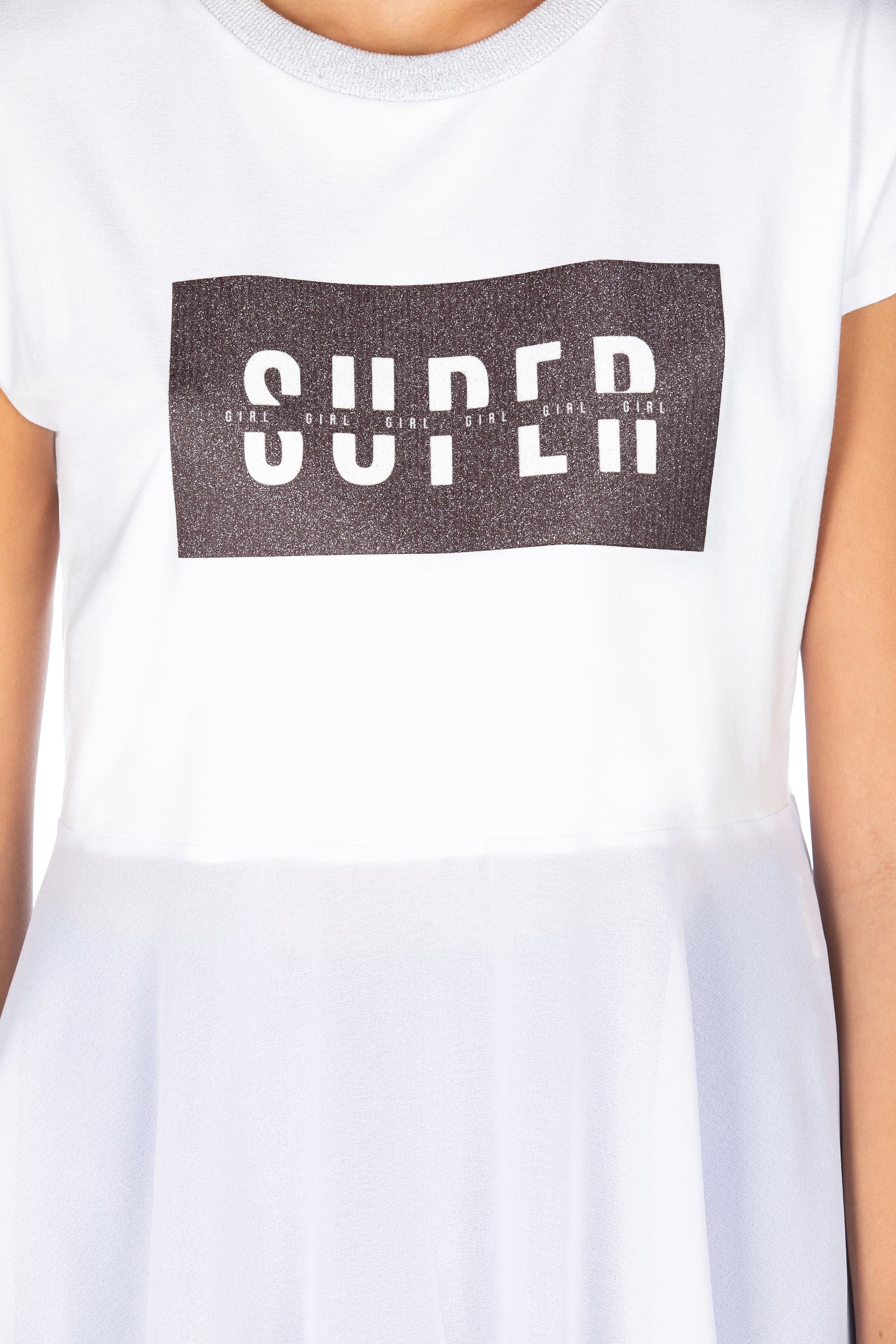 SUPEROR 闪粉印花乔其纱褶边长款半袖 T 恤