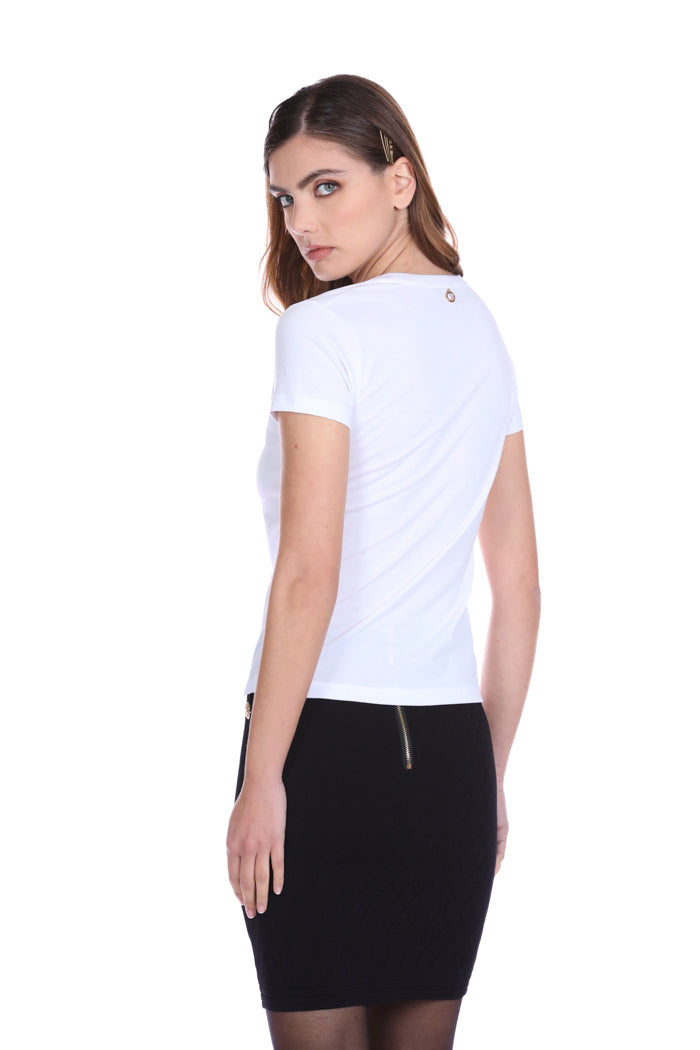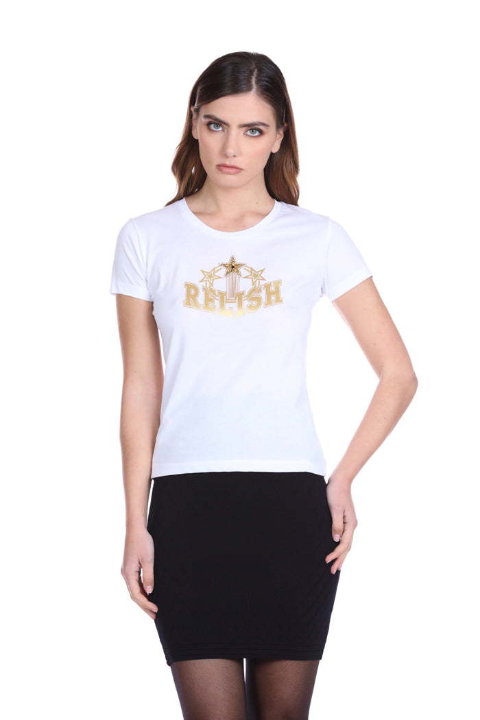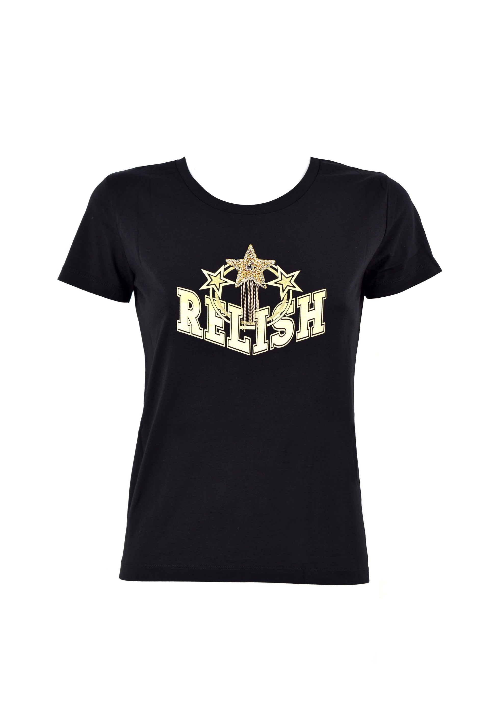 半袖 THITY T 恤,带箔印花加星星应用,带水钻加珠加链