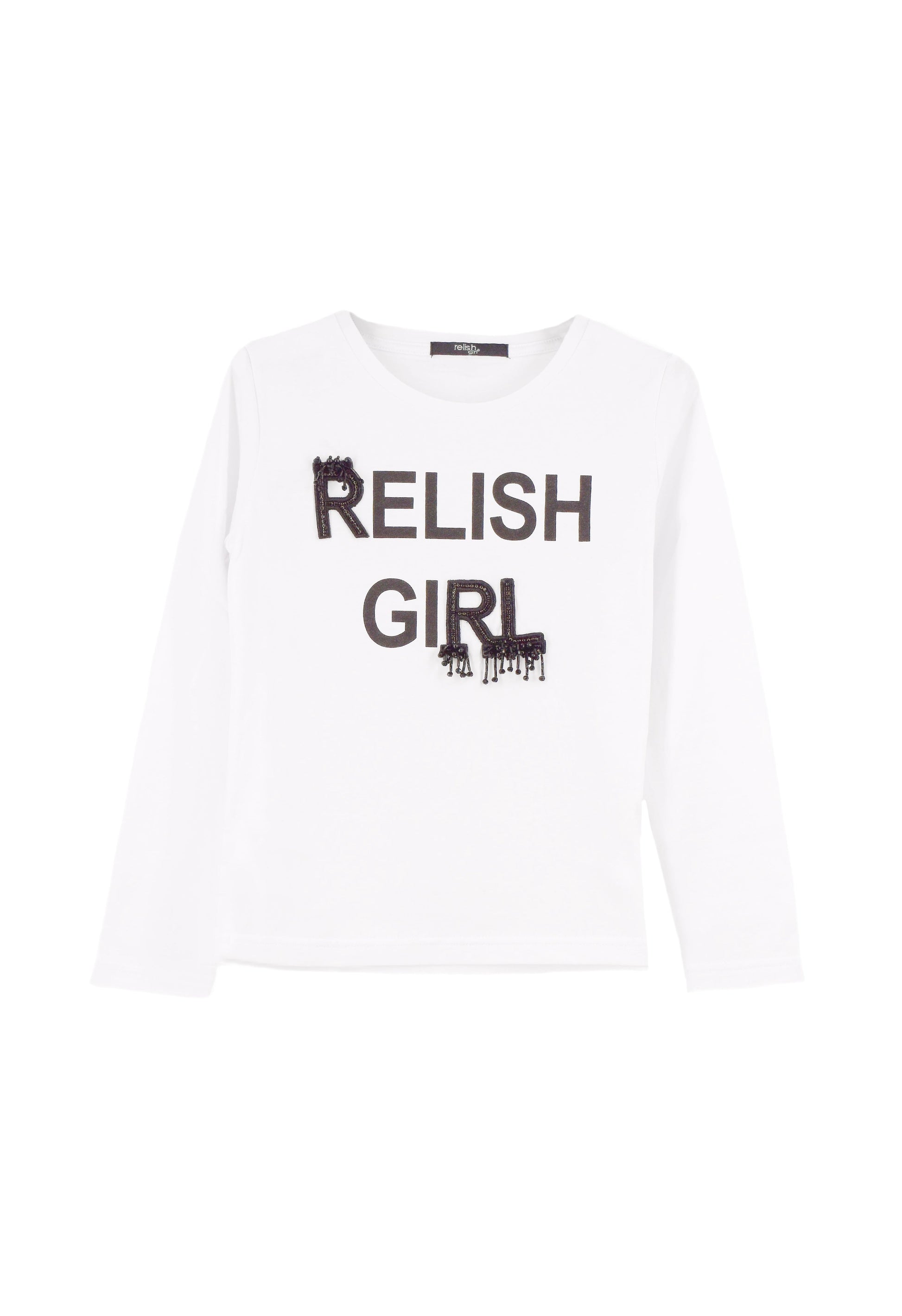 URSYT 女童长袖 T 恤 Relish Girl Print plus Embroidery Appl. 珠子和水钻