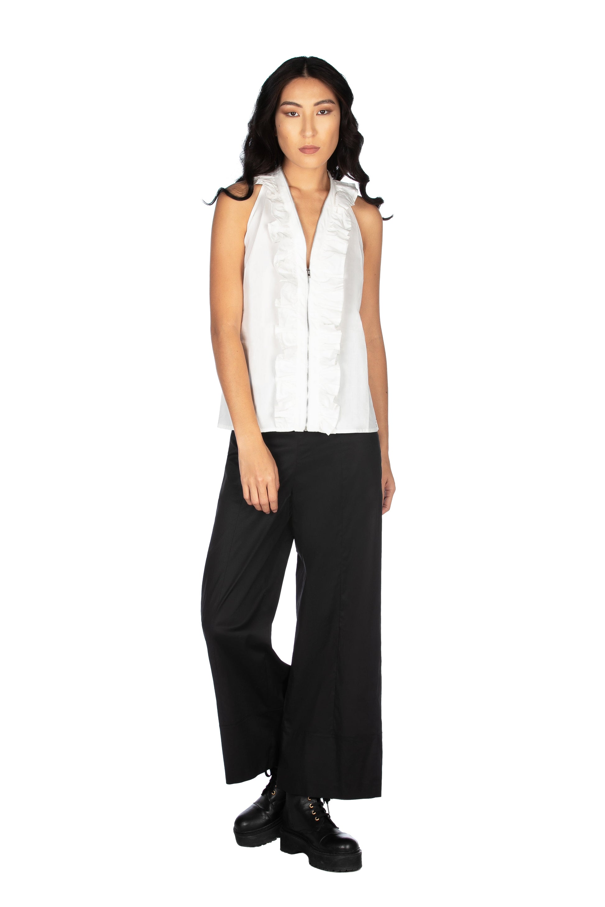 顶部 ENGLAND 领口带拉链和荷叶边