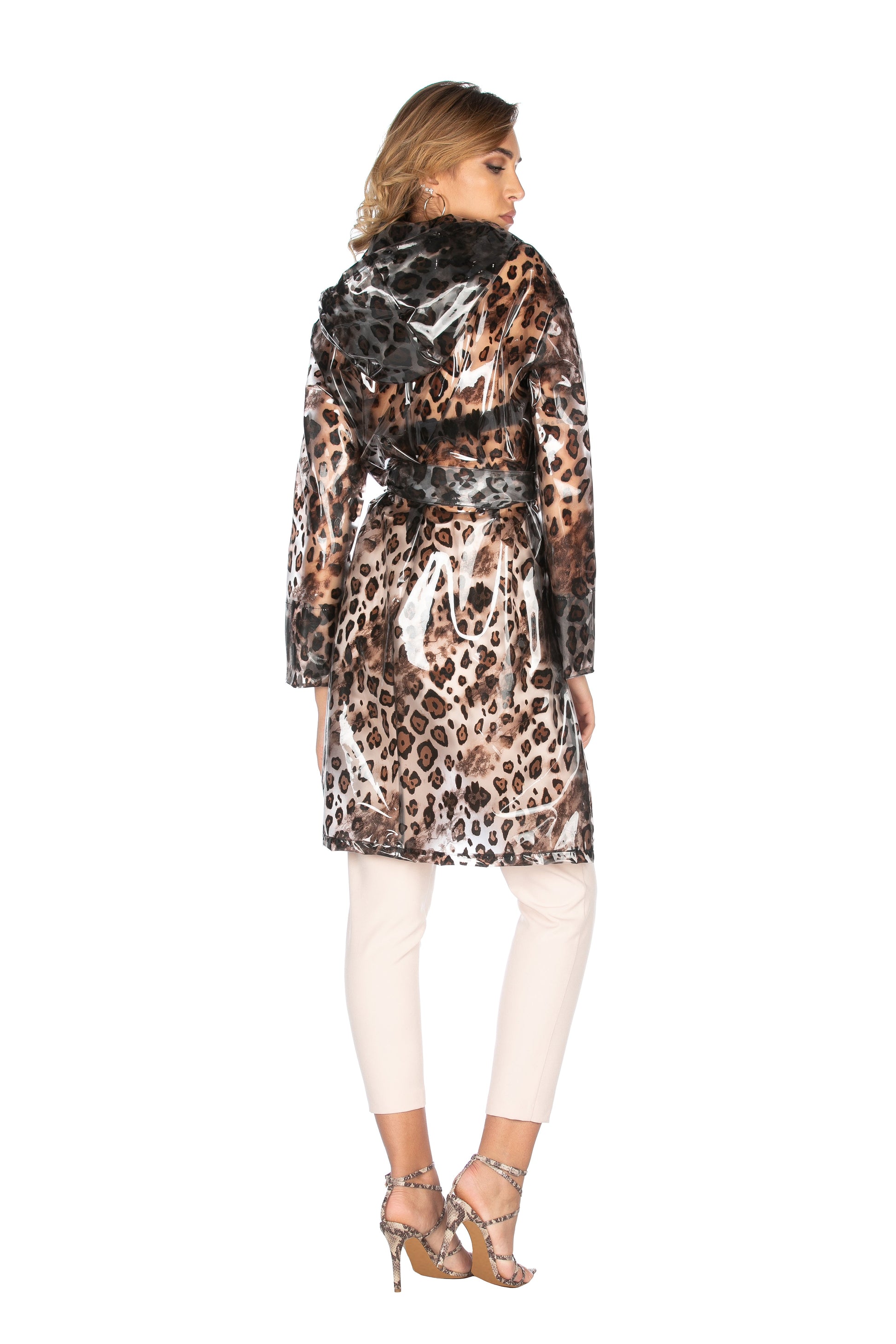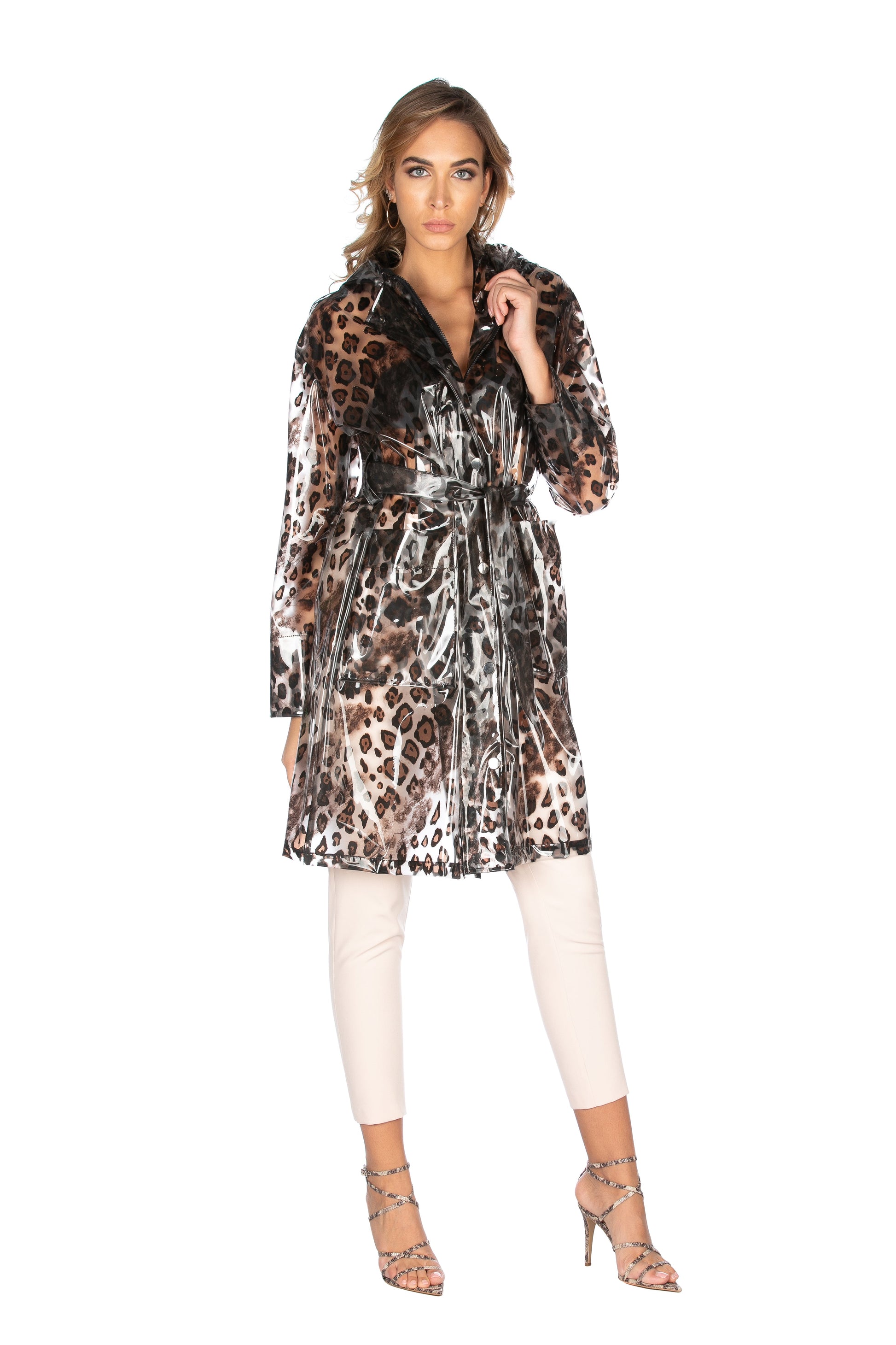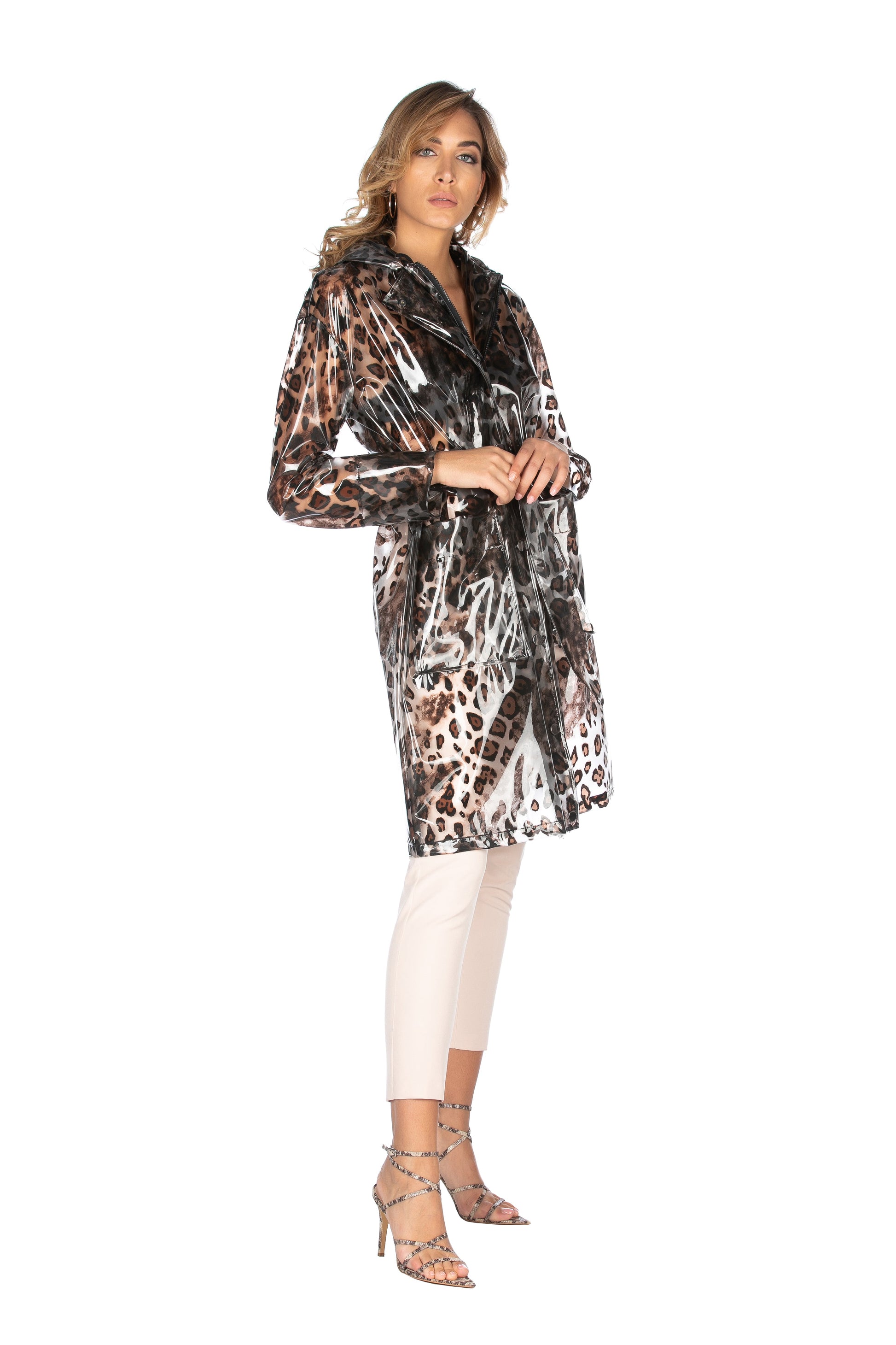 ABERYSTWITH 长袖 PVC 防雨风衣,带兜帽和动物印花口袋