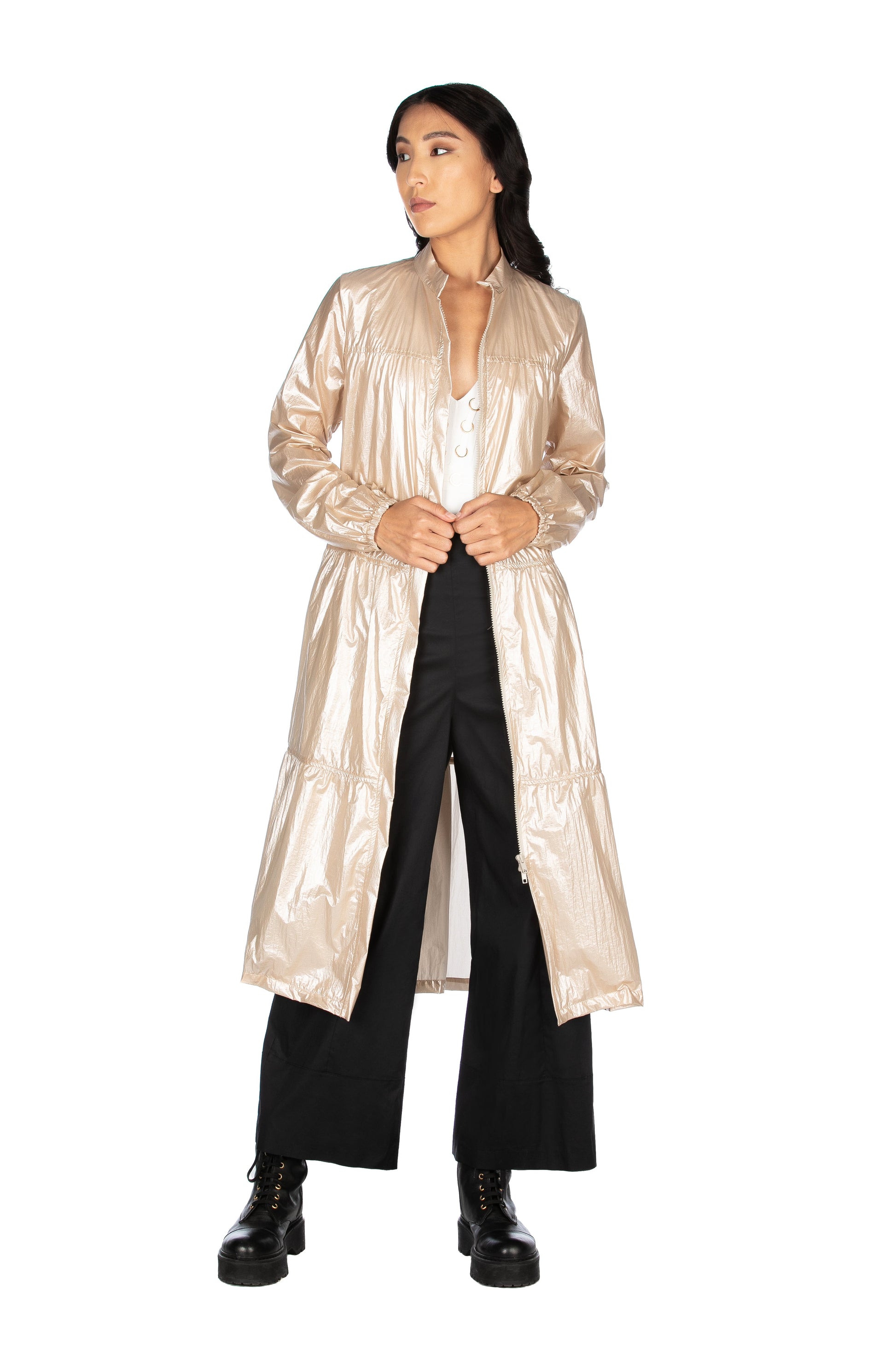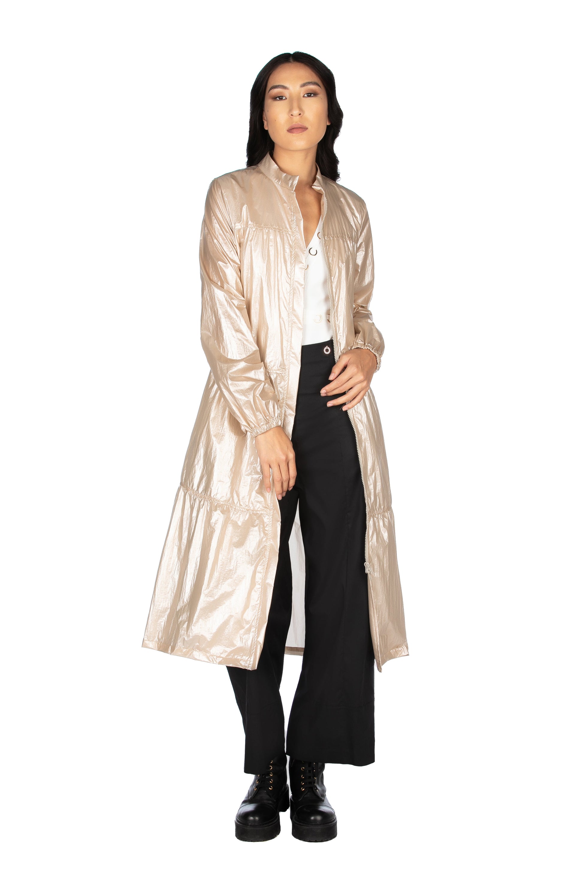 ACCADIA 风衣中长款长袖开心果领加拼接