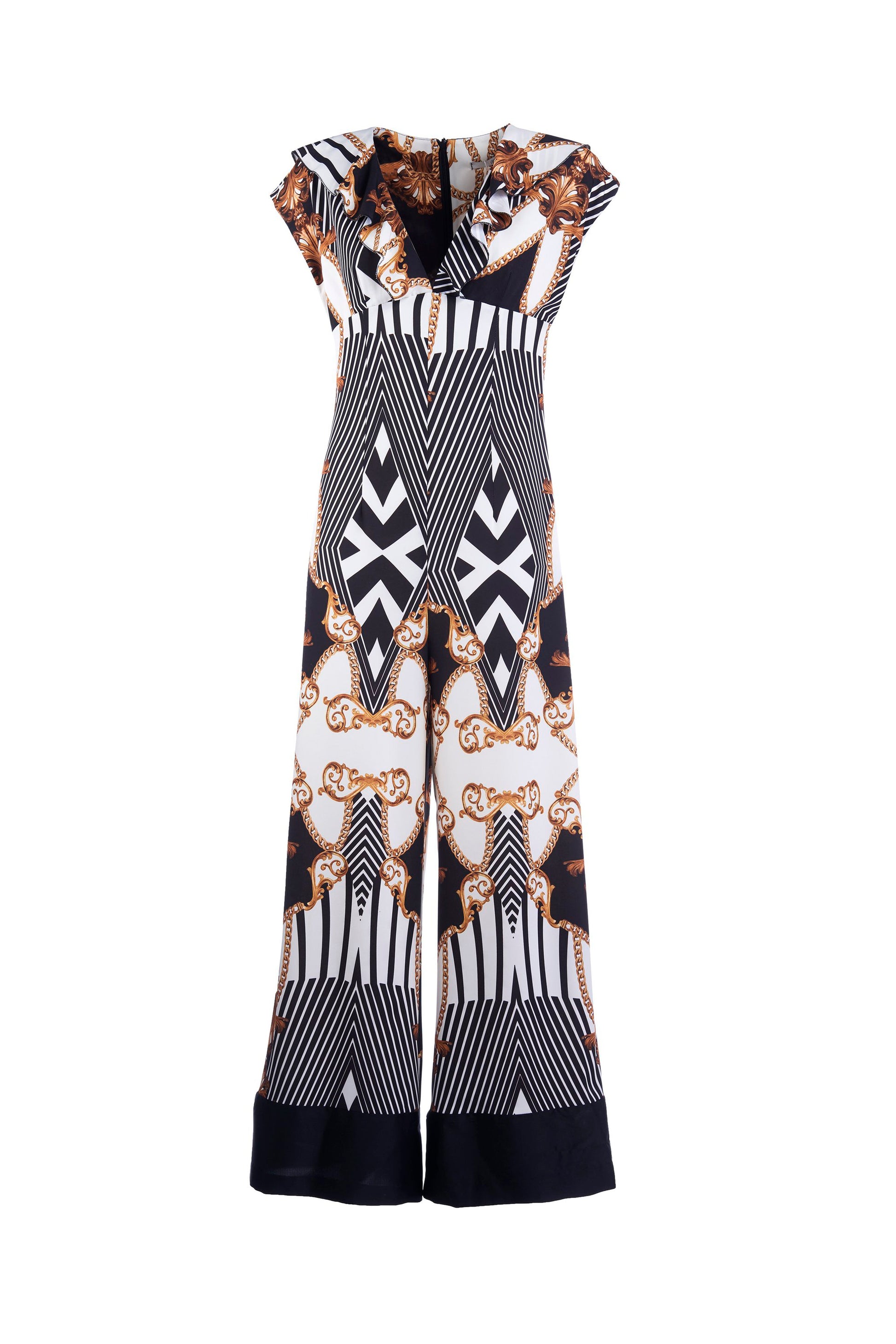连衣裤 CANADA 半袖 V 领翻盖带围巾图案宫廷荷叶边