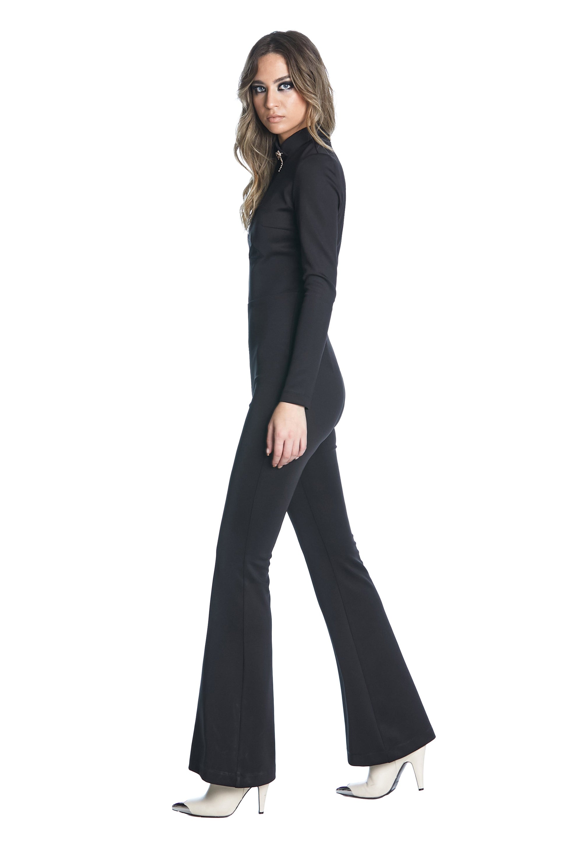 SENZAME 长喇叭袖连衣裤和薄纱嵌件加水钻胸针